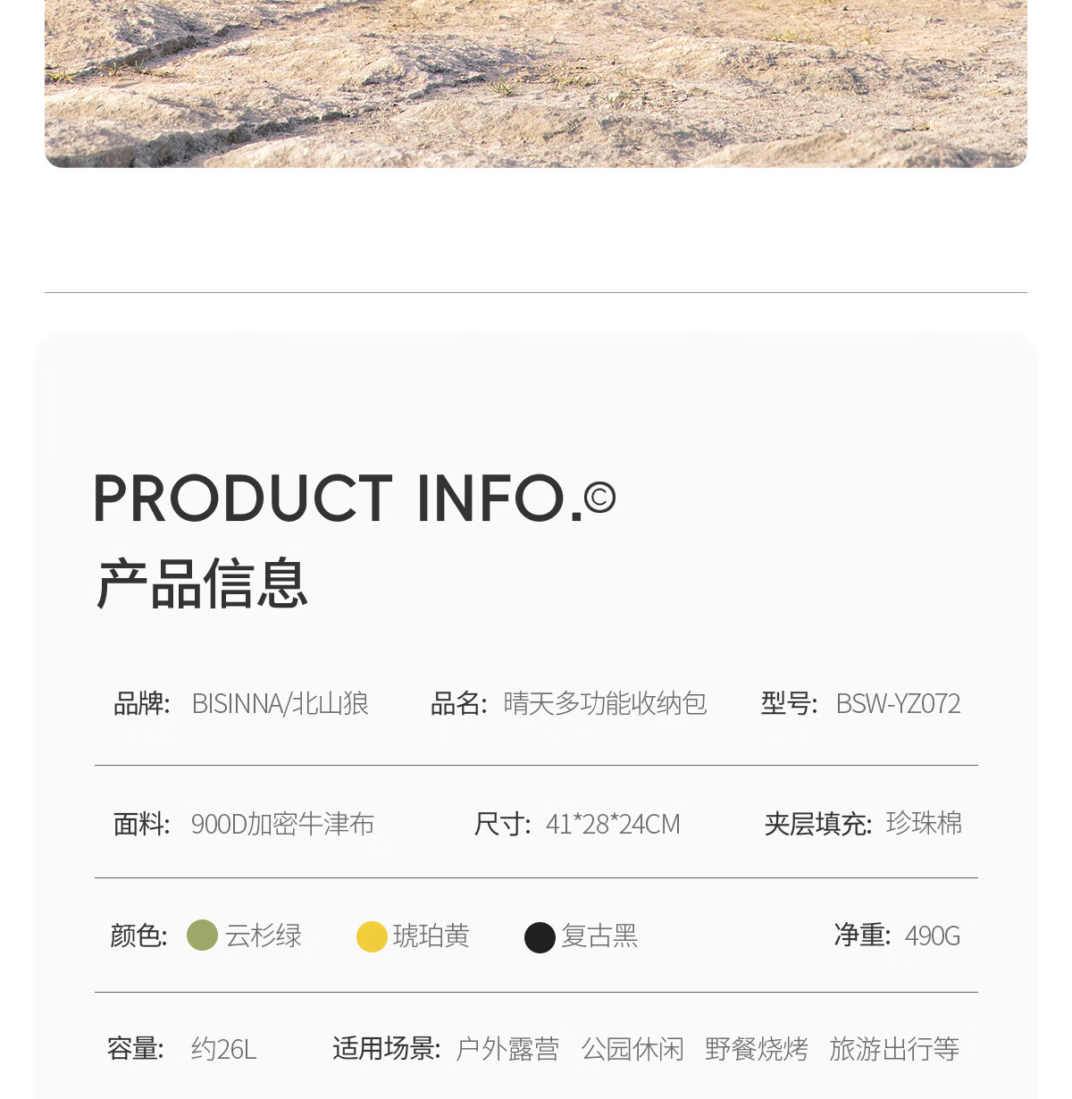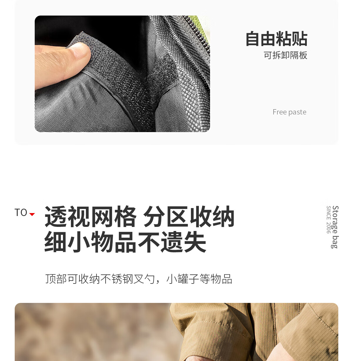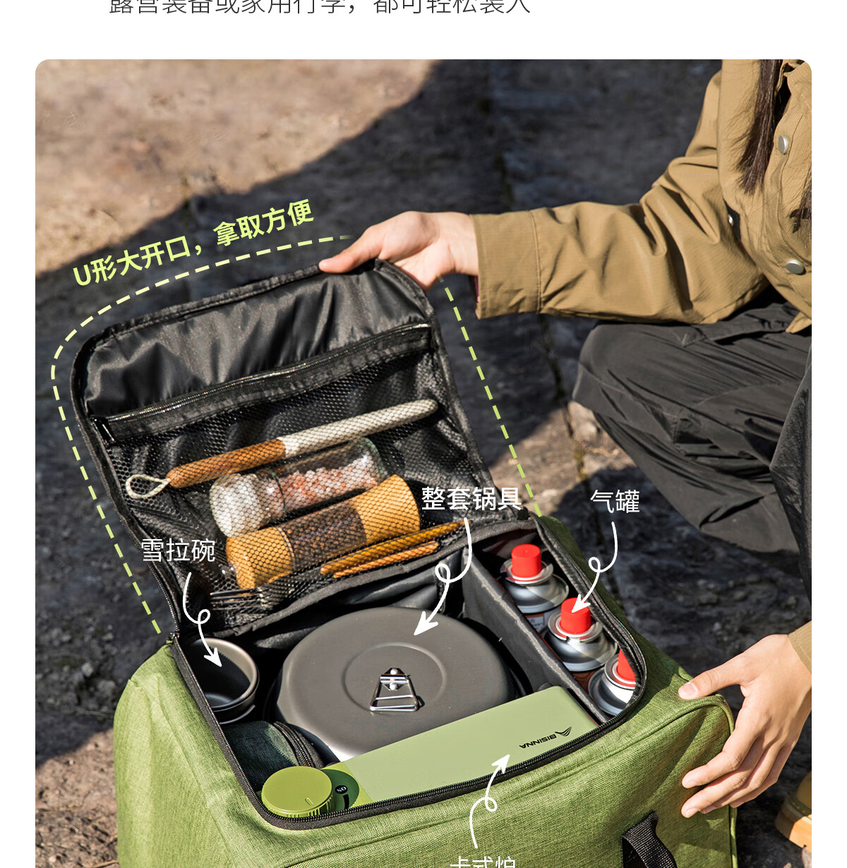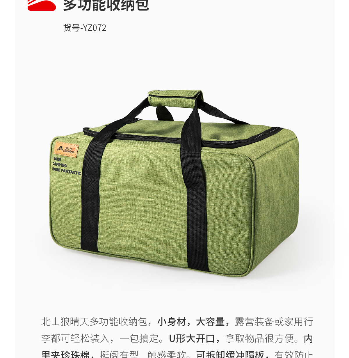 该款“北山狼”品牌的户外野餐、露营炊具烧烤多功能旅行收纳包,采用900D加密牛津布,结实耐用,防水,防潮抗撕裂,内部分隔存储,大小物件都能装,非常实用。