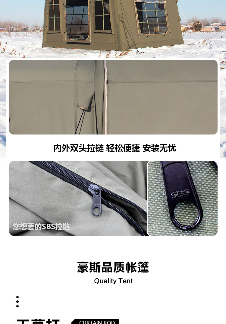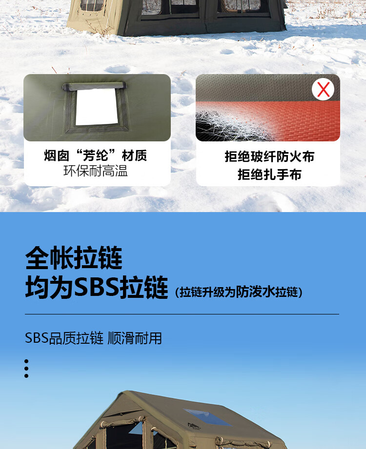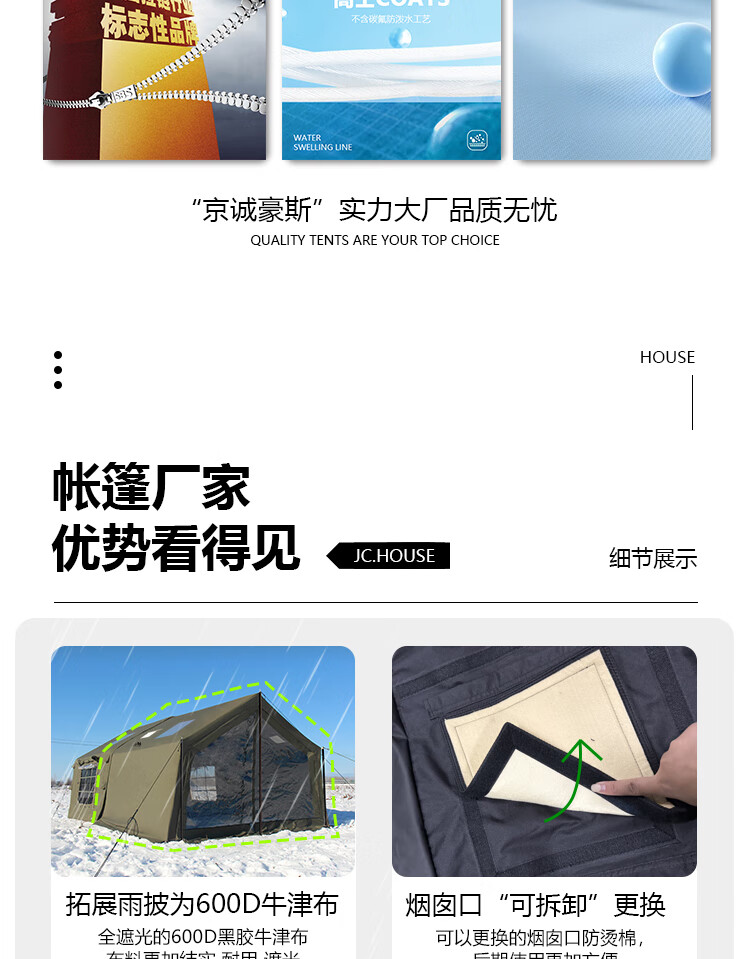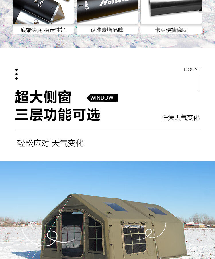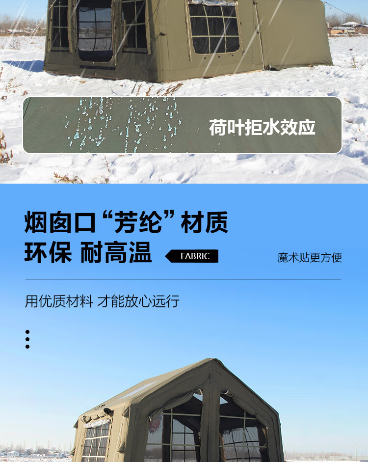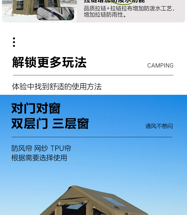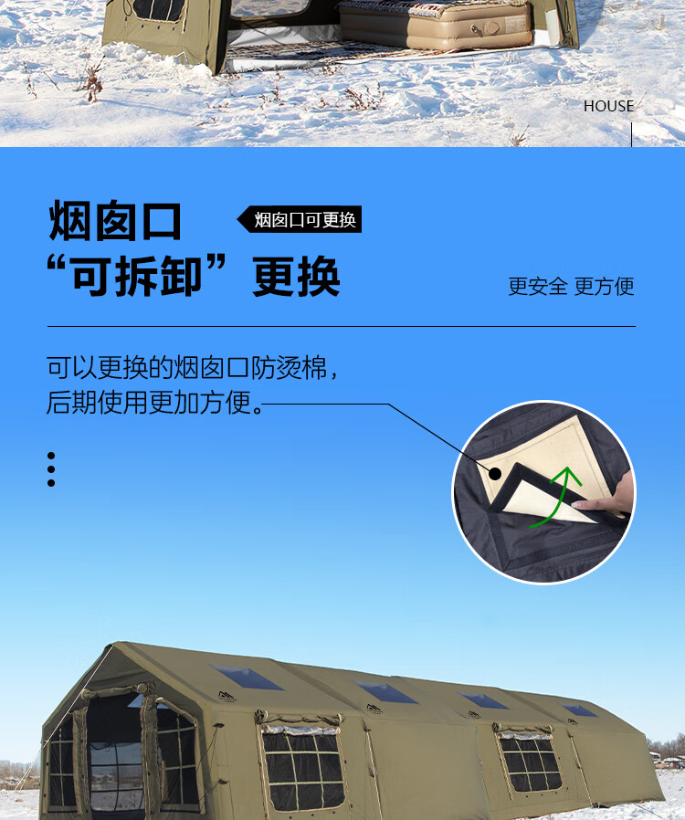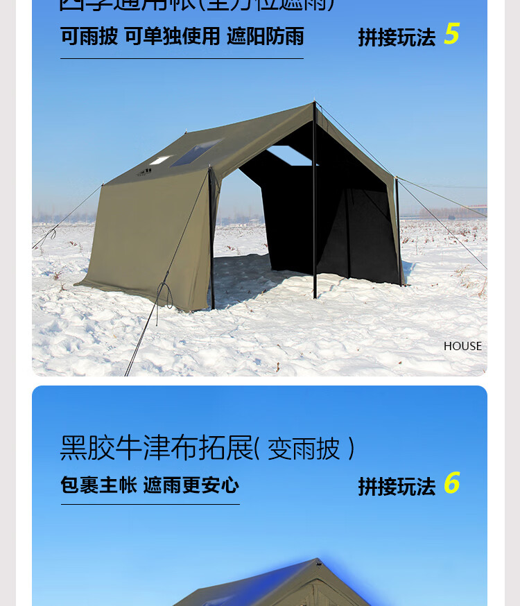 京诚豪斯JcHouse8+8.8㎡充气帐篷拓展式棉布野露营地过夜屋脊帐 军绿8+8.8㎡主帐+拓展气柱