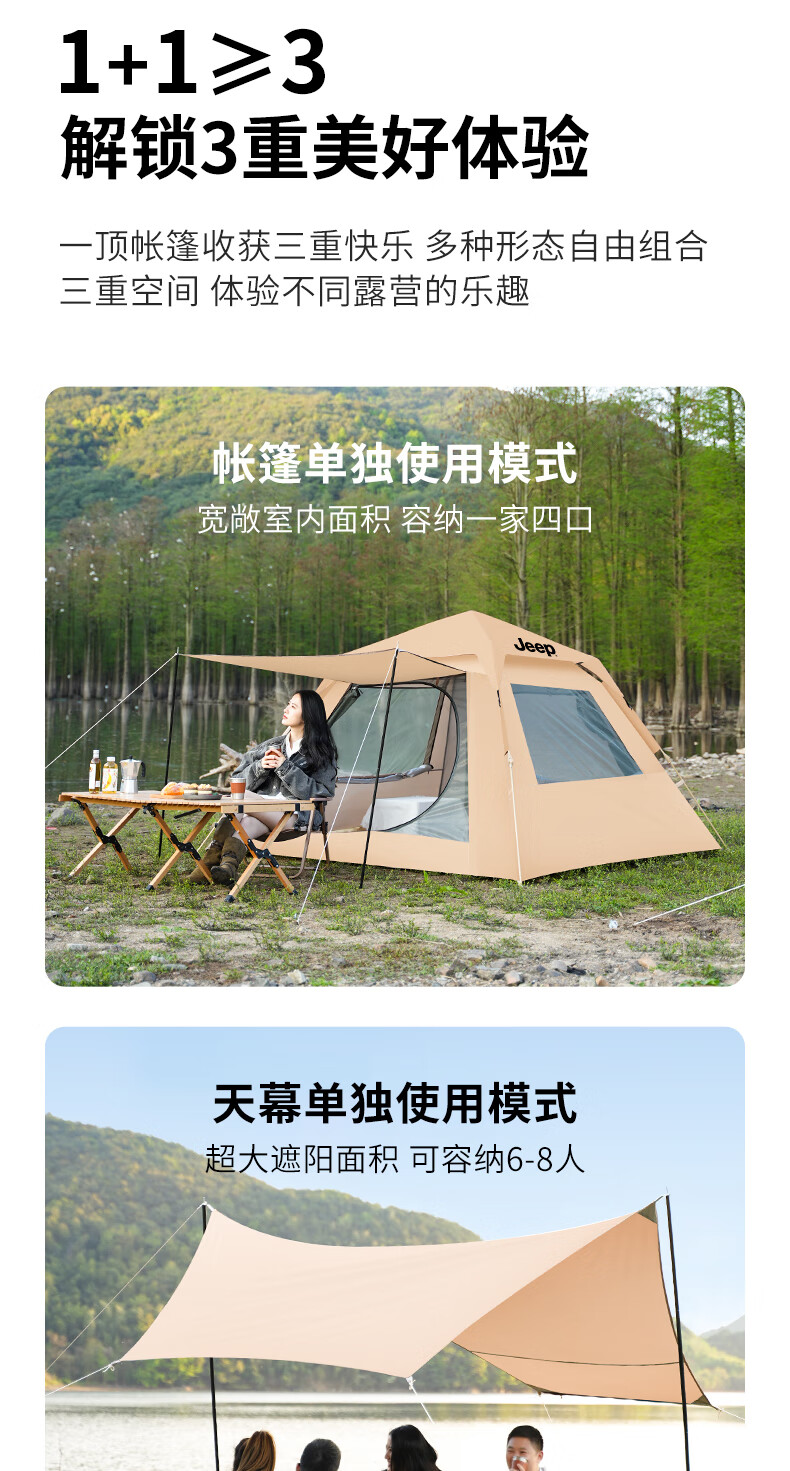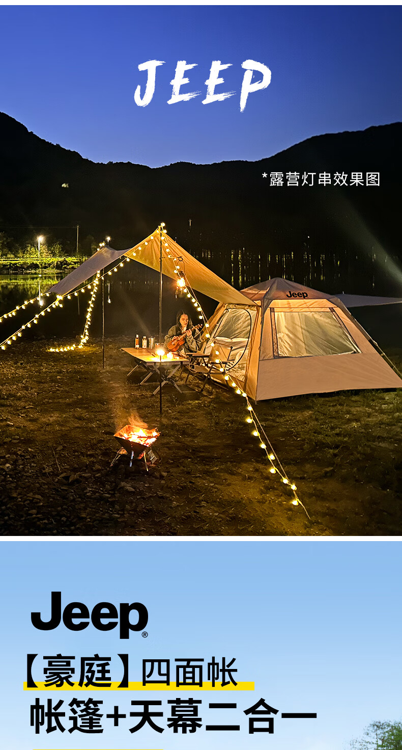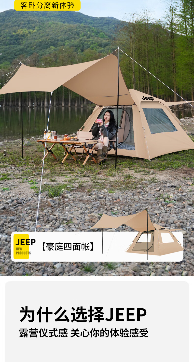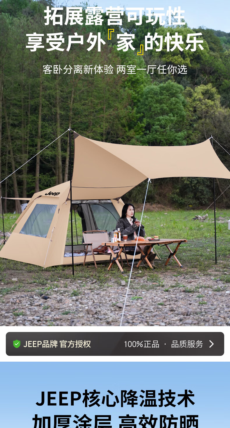 JEEP帐篷户外天幕一体折叠便捷式野外装备全套自动露营防蚊 5-8人天幕帐篷【一室两厅】