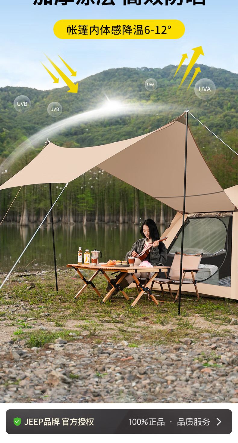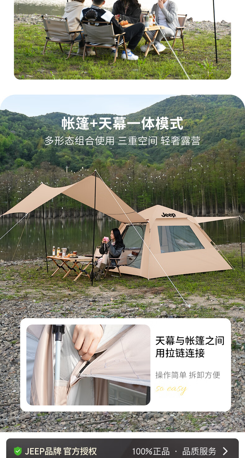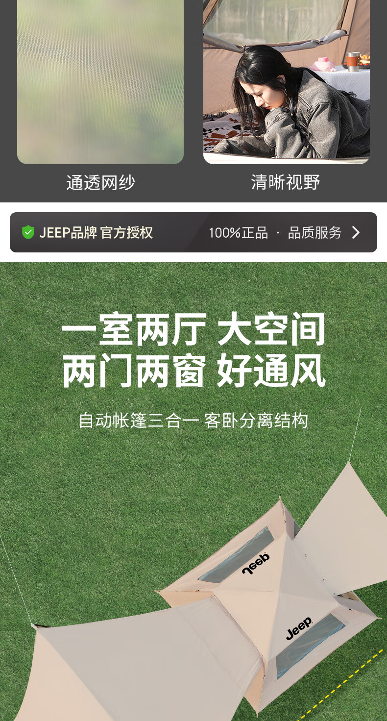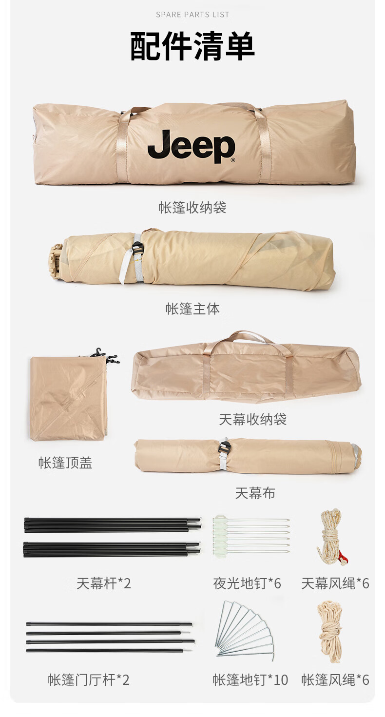 JEEP帐篷户外天幕一体折叠便捷式野外装备全套自动露营防蚊 5-8人天幕帐篷【一室两厅】