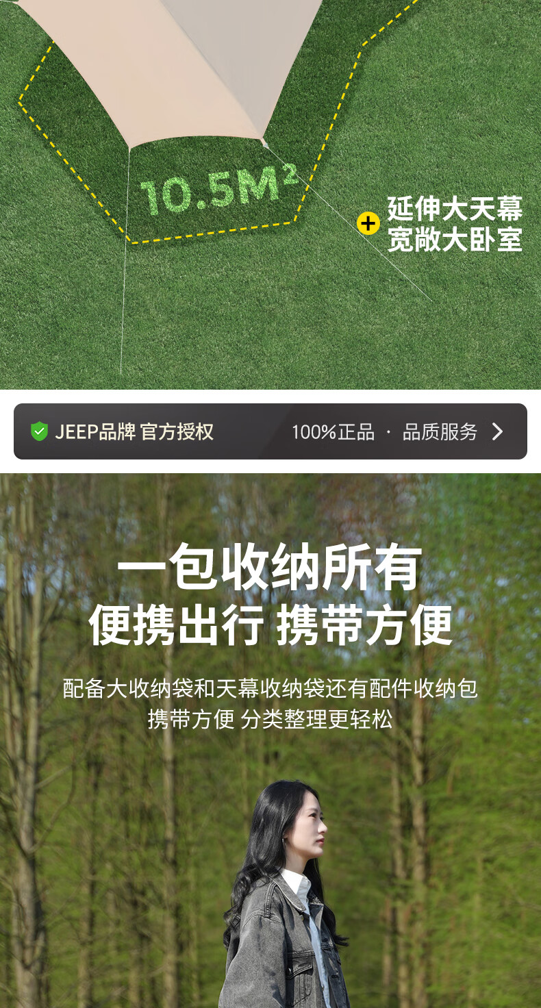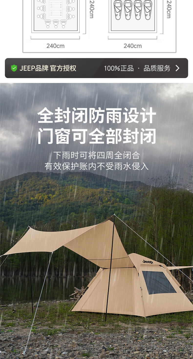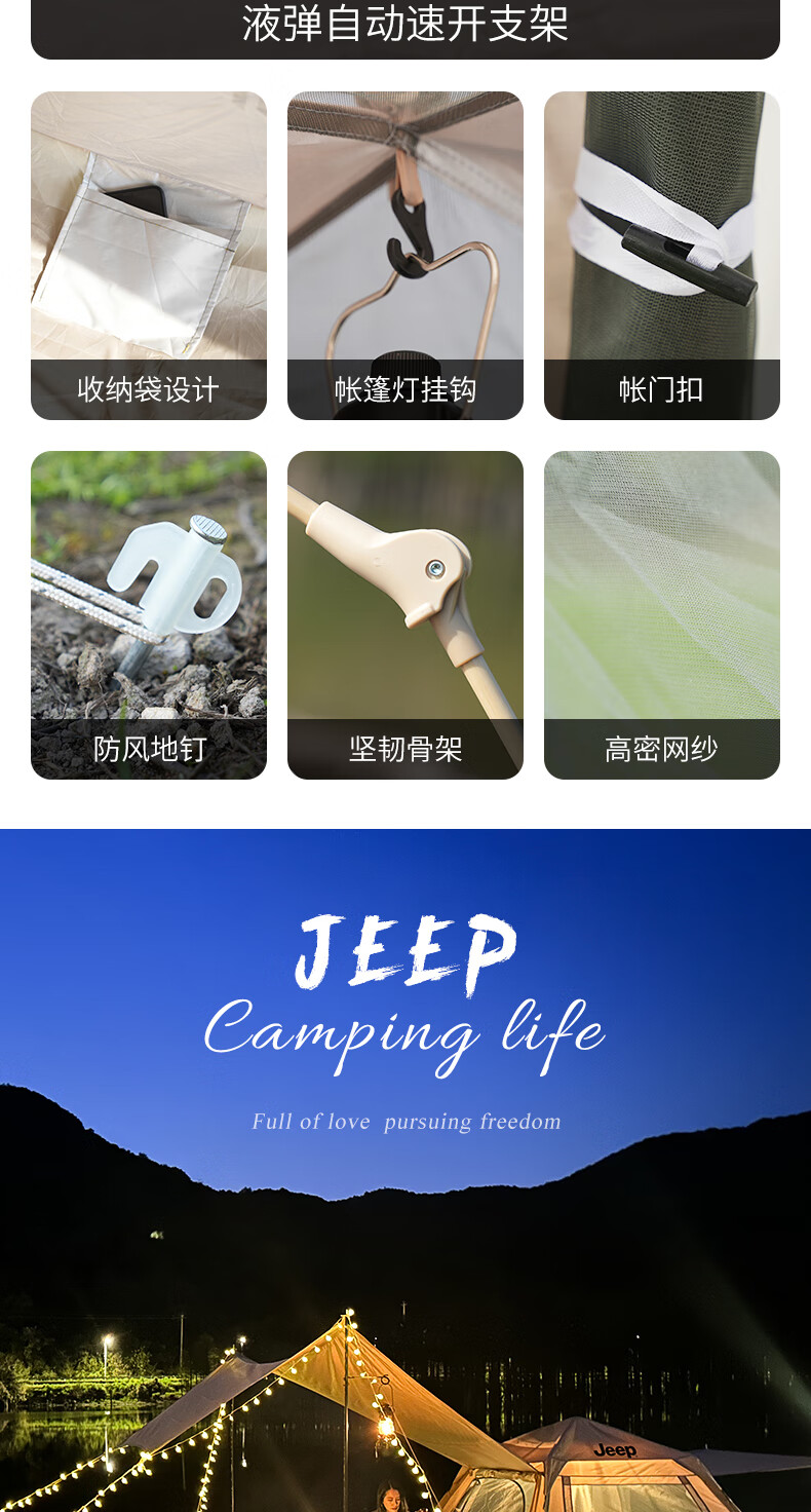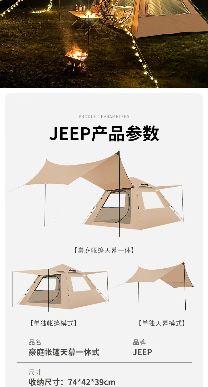 JEEP帐篷户外天幕一体折叠便捷式野外装备全套自动露营防蚊 5-8人天幕帐篷【一室两厅】