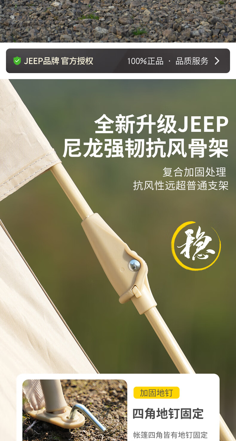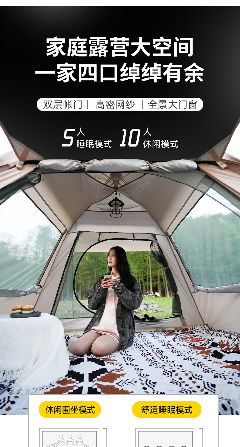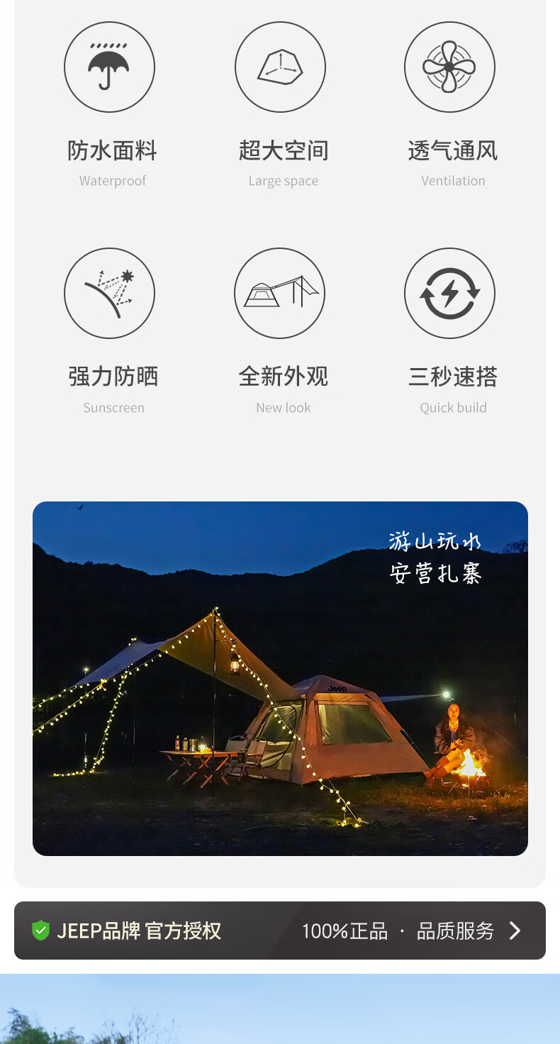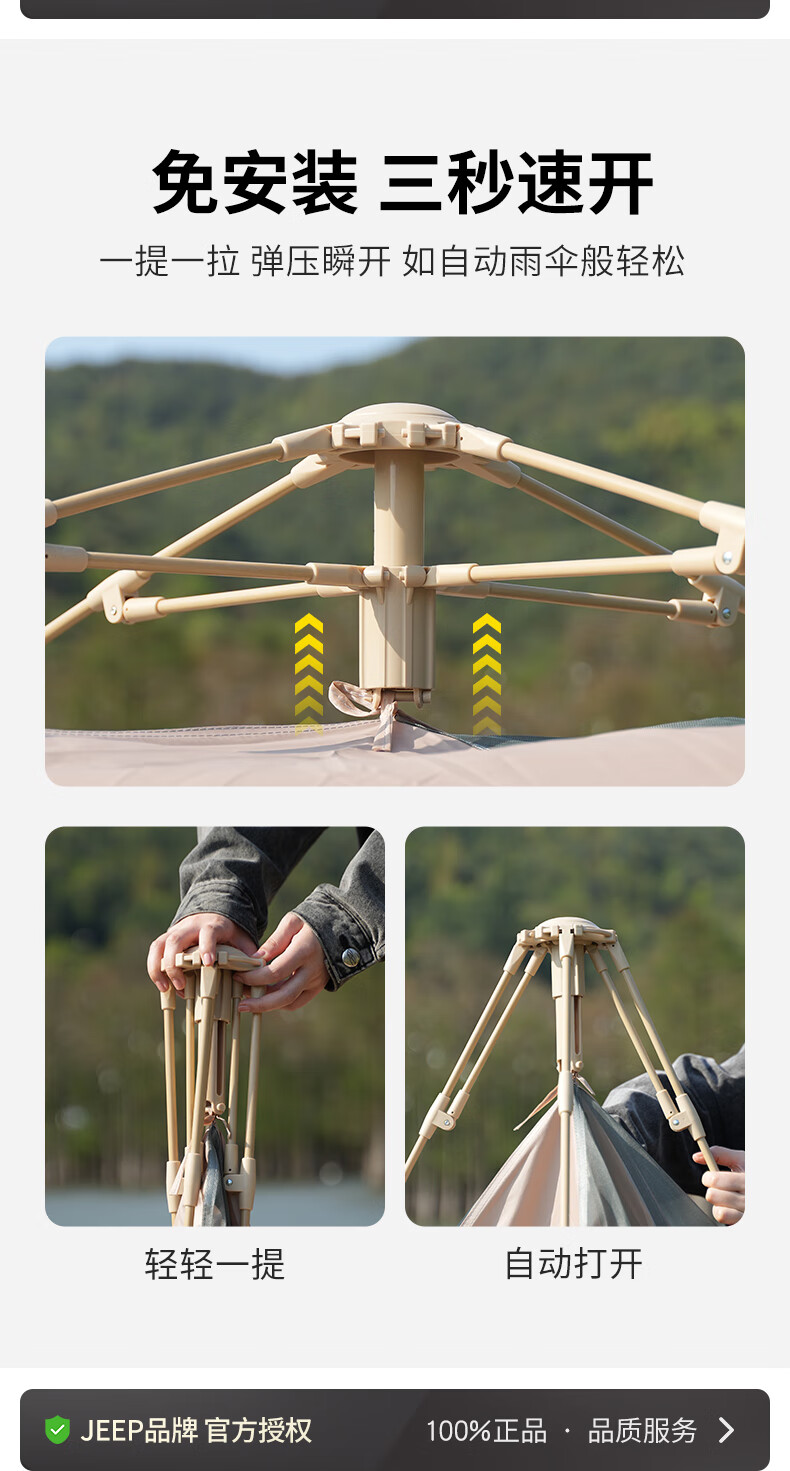 JEEP帐篷户外天幕一体折叠便捷式野外装备全套自动露营防蚊 5-8人天幕帐篷【一室两厅】