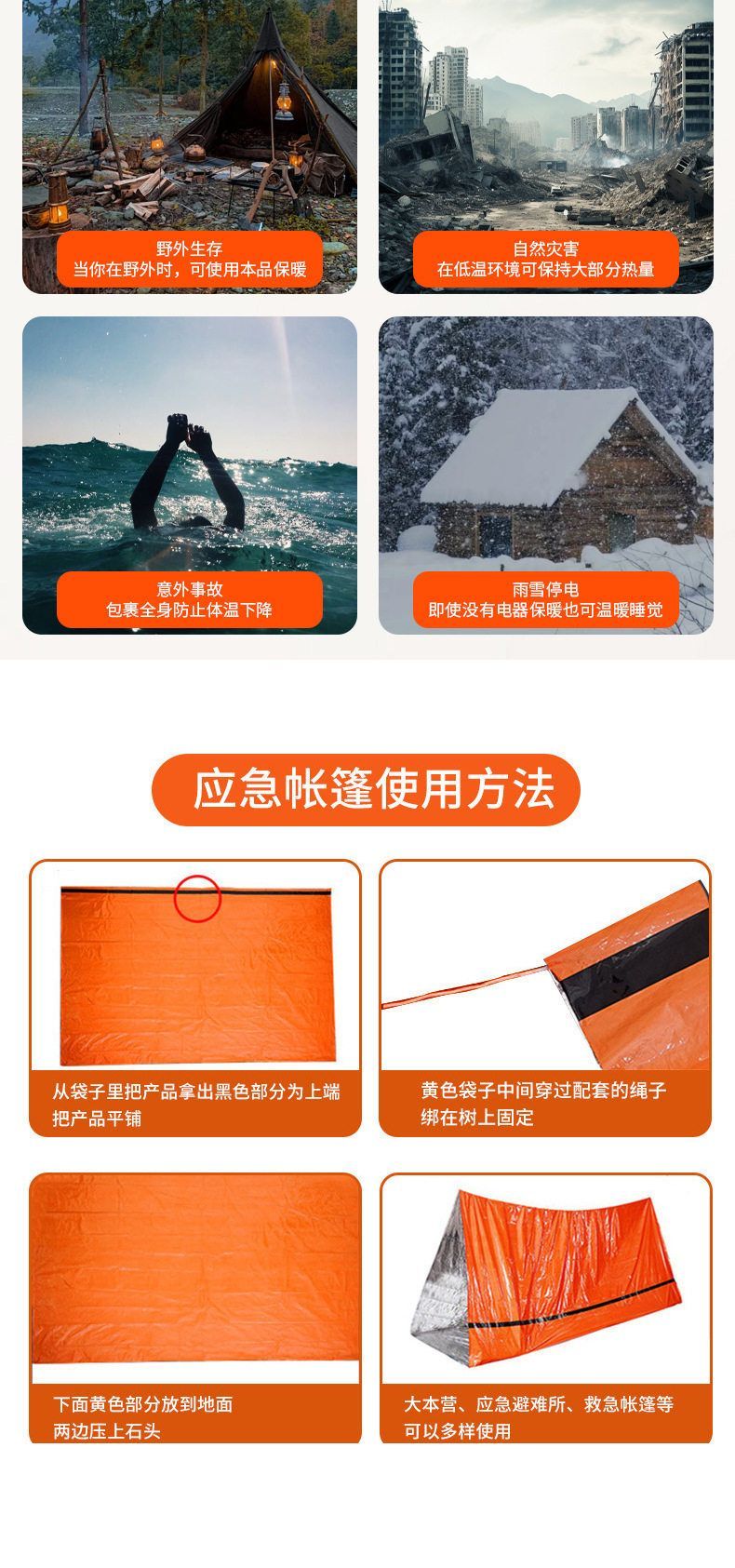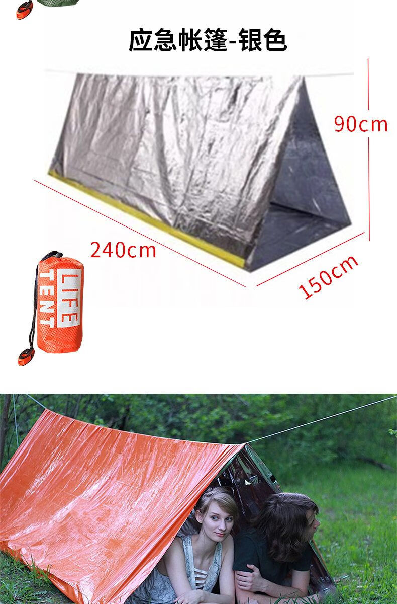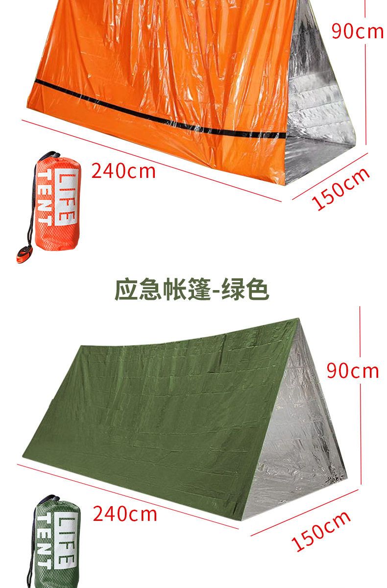 挺进者救灾应急帐篷便携式户外求生帐篷野营临时保暖荒野求生三角帐篷 橙色 1.5米*2.4米