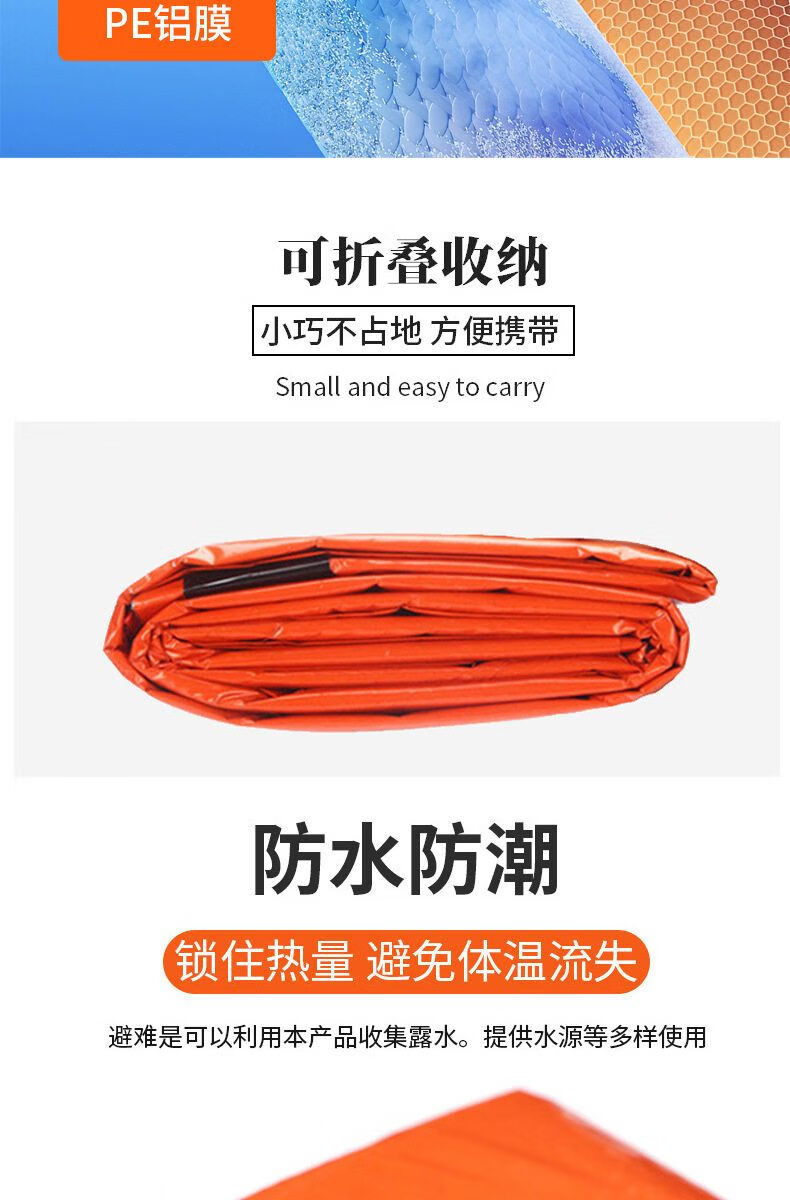 JCZS德国户外应急保温毯防寒救生毯雨衣生存装备用品野外爬山防失温毯 橙色【单个装】雨衣式应急保温毯