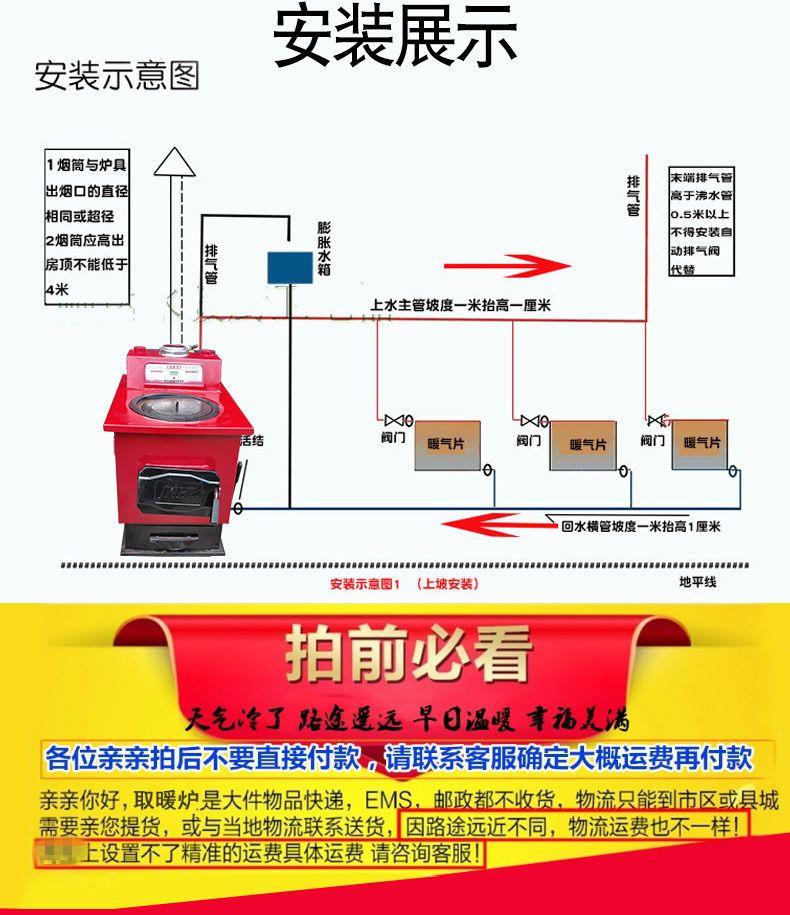 通炕锅炉采暖炉农村节能柴煤两用炉反烧加厚暖气炉子家用煤柴新款 100型通炕(加厚节能款)