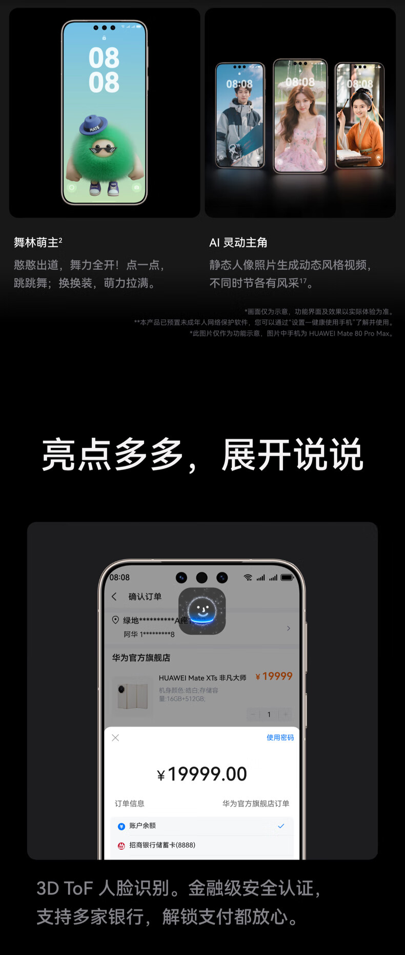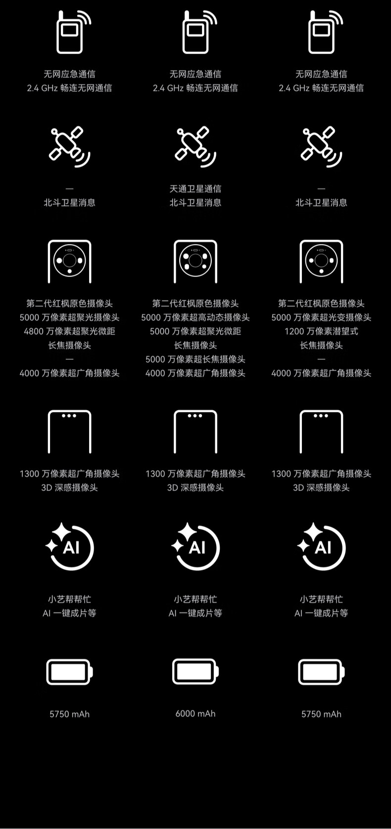 AI大模型,LTPO屏幕,高频PWM调光,全焦段影像,潜望式长焦,防水防尘,无线充电,NFC,红外遥控,大底主摄