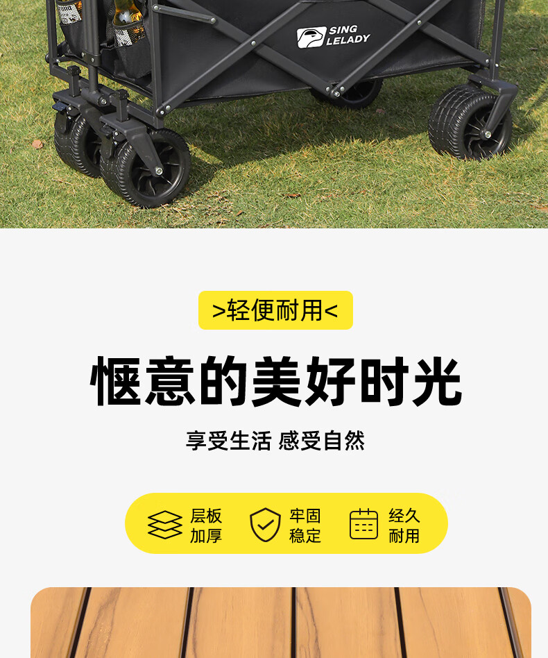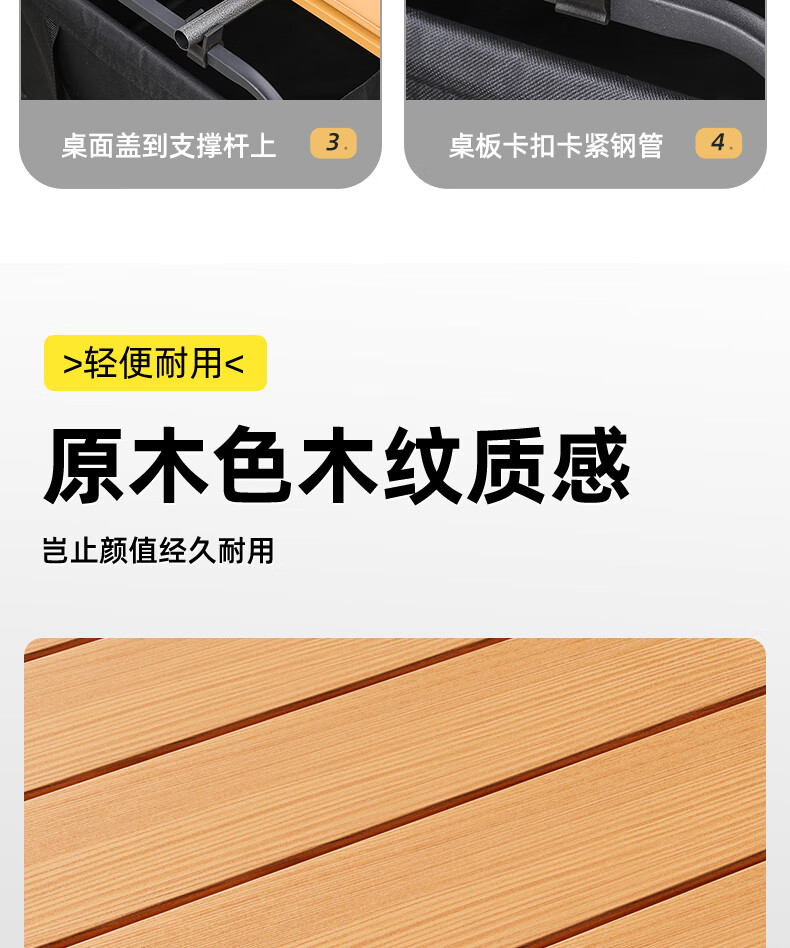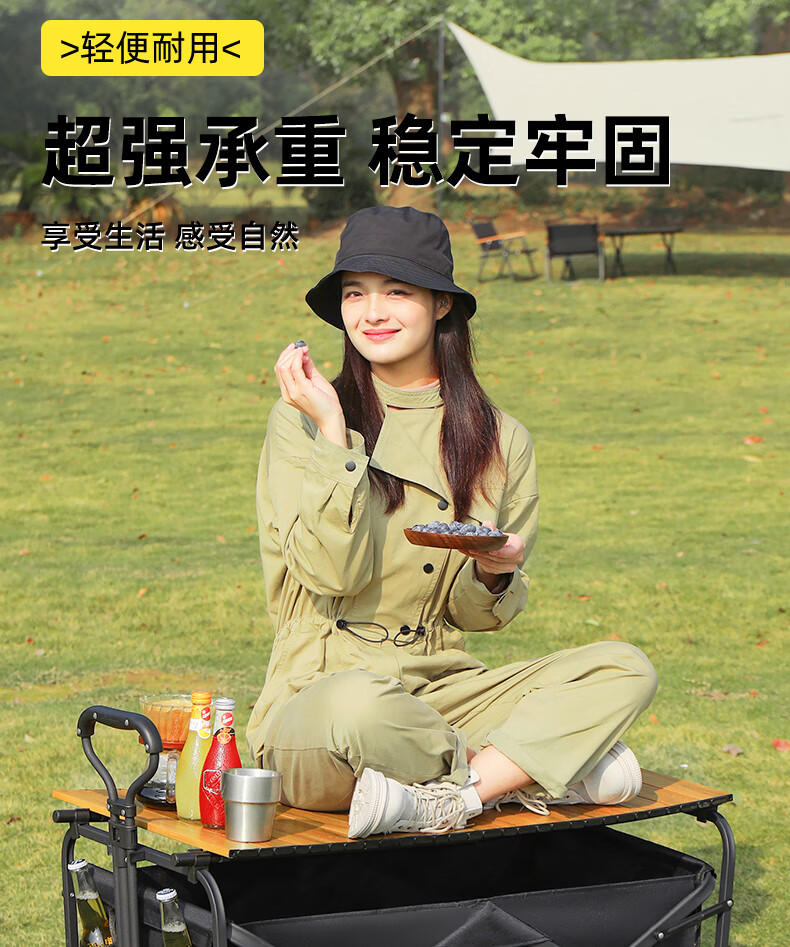 靠森(Kaooseen)户外露营推车桌板折叠小拖车野营车桌面铝合金蛋卷桌板野餐车 木纹色碳钢小号5寸桌板