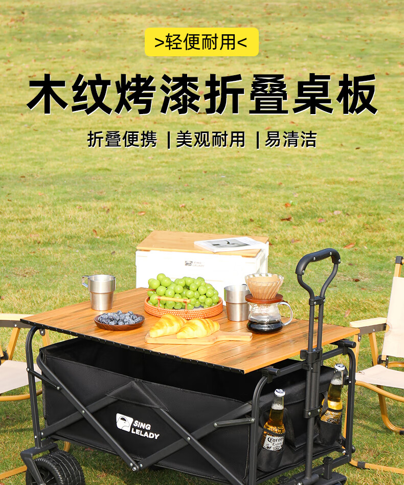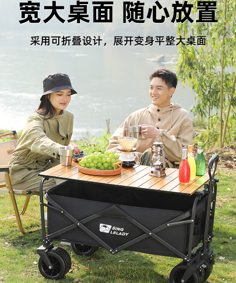 露营车户外可折叠便携野营车自驾游摆摊买菜手推车儿童可躺营地车 后开设计推车桌板(通用)
