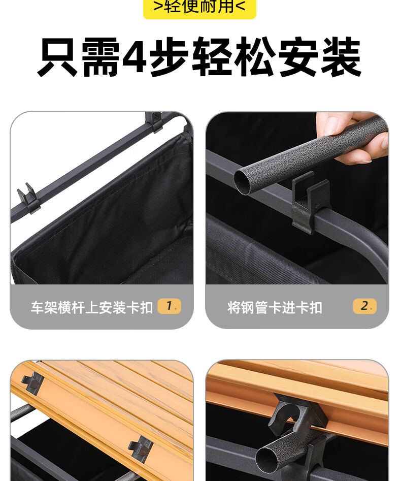 收到立马安装,很结实,非常的实用,户外车绝配。选了很多家,最终选择这家的,没有让我失望,便于收纳,客服耐心周到,不厌其烦