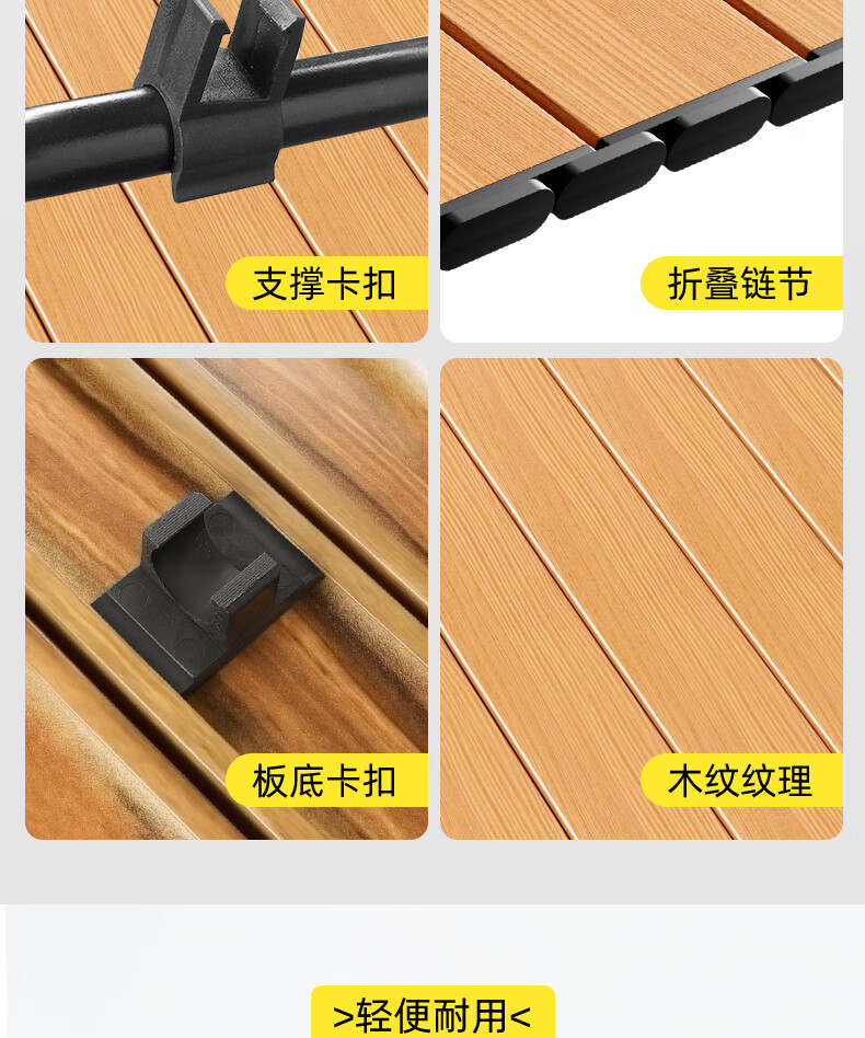 露营车桌板便携桌板户外小车桌板通用强力承重摆摊野营野餐装备 90cm木纹+卡扣*6+6mm螺杆卡扣*6