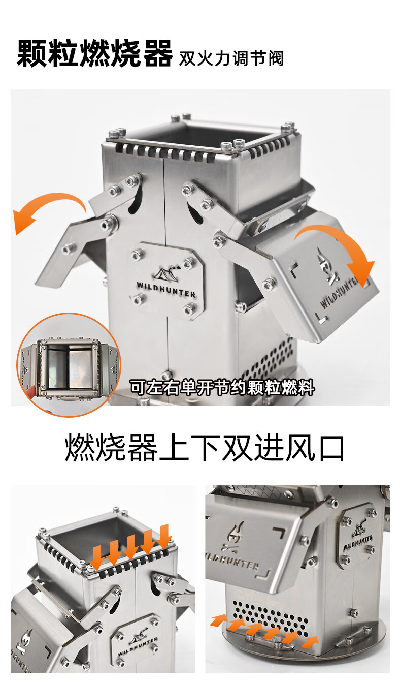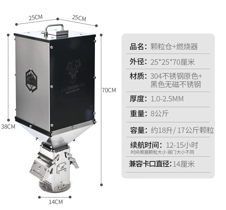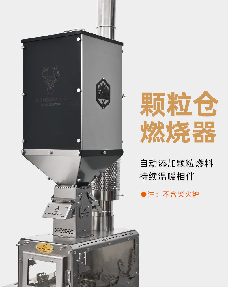 荒野猎人户外柴火炉颗粒仓露营帐篷炉大容量304燃烧器涡轮燃料斗 304大颗粒仓&燃烧器(14cm接口)