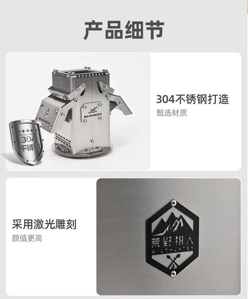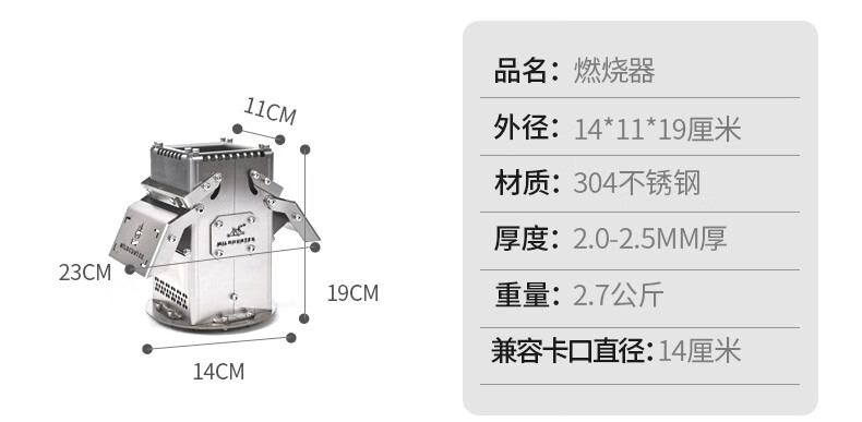 Naturehike挪客炽焰颗粒取暖炉便携户外露营帐篷取暖器野营营地野餐炊具炉具 不锈铁本色