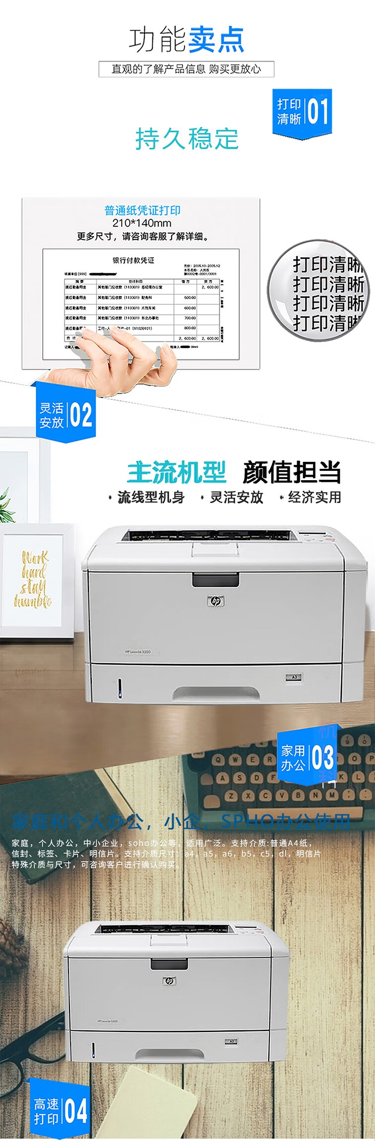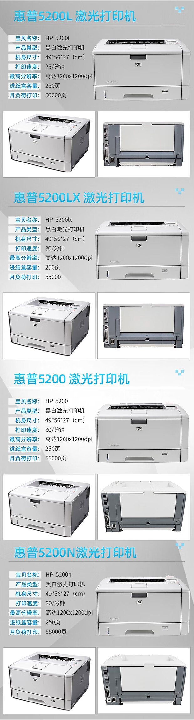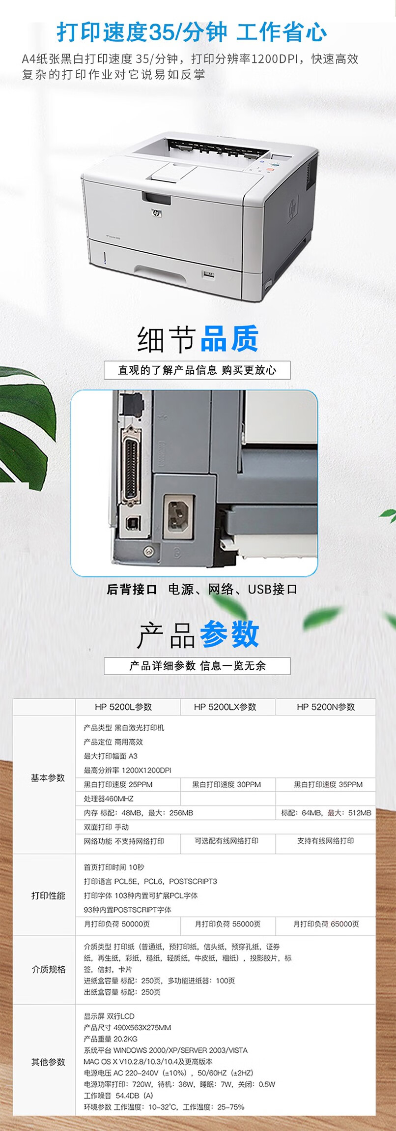 惠普HP5200打印机a4a3双面激光打印机牛皮纸不干胶CAD图纸打印机 5200 A3a4 二手九成新 套餐一