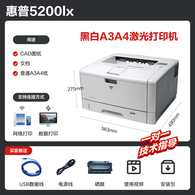 HP5200打印机a4a3学生作业试卷CAD图纸家用办公黑白激光打印复印机 5200(A3 A4无线+远程)九成新 标配