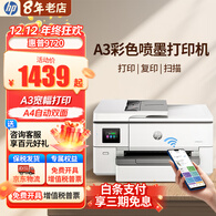 惠普(HP)A3/A4打印机9730/9720彩色喷墨打印复印扫描一体机 自动双面办公商用 无线三合一照片试卷打印 惠普9720【A3打印A4打印复印扫描】单纸盒 官方标配【原装墨盒1套】1次性墨盒不