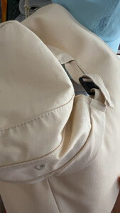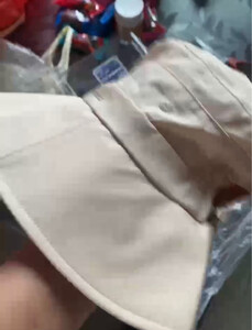 米白色夏天带着会感觉凉快一些,偏黄,头围大小可以调节,比较方便调整,重点是有空出扎马尾的地方,很人性化的设计,也是看了很多家才看到这个设计,第一次购买,面料方便携带!