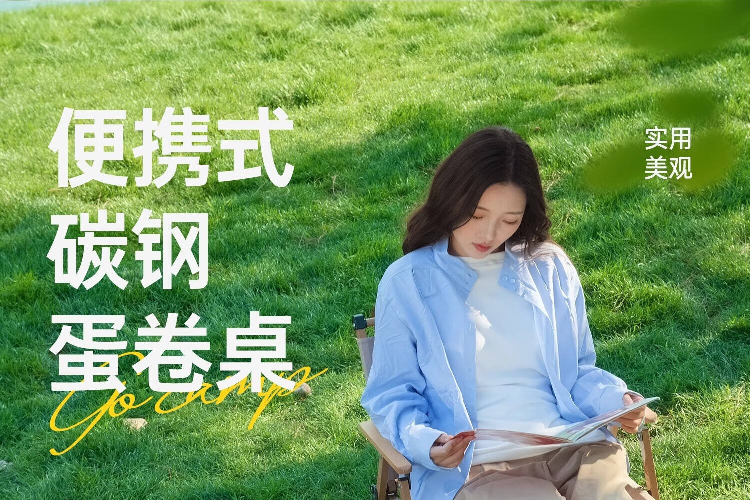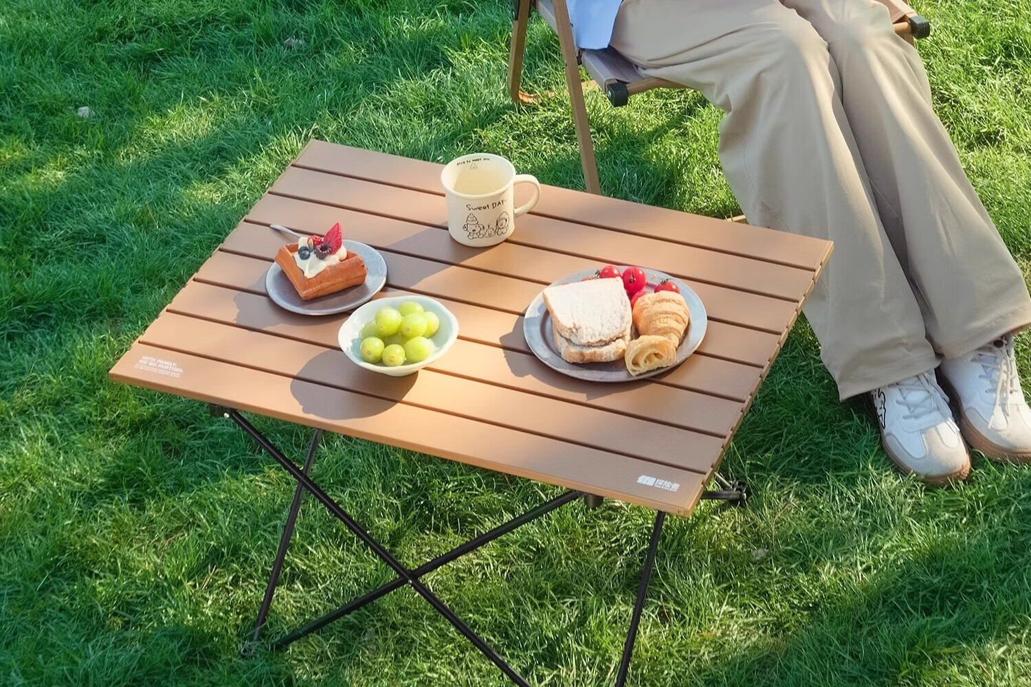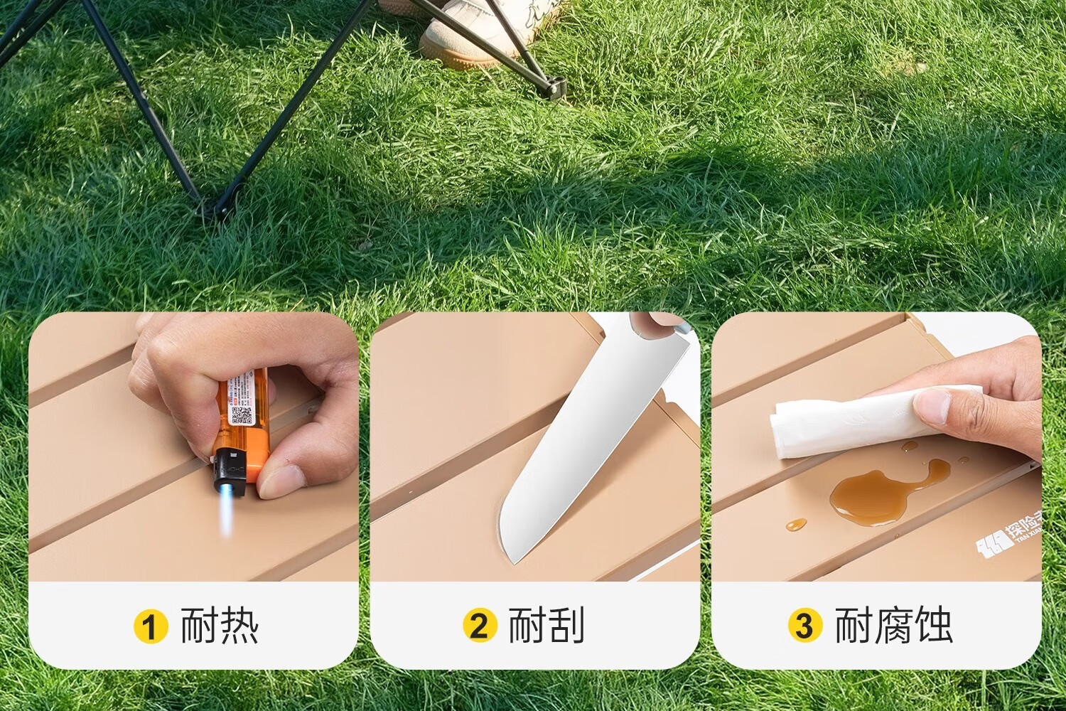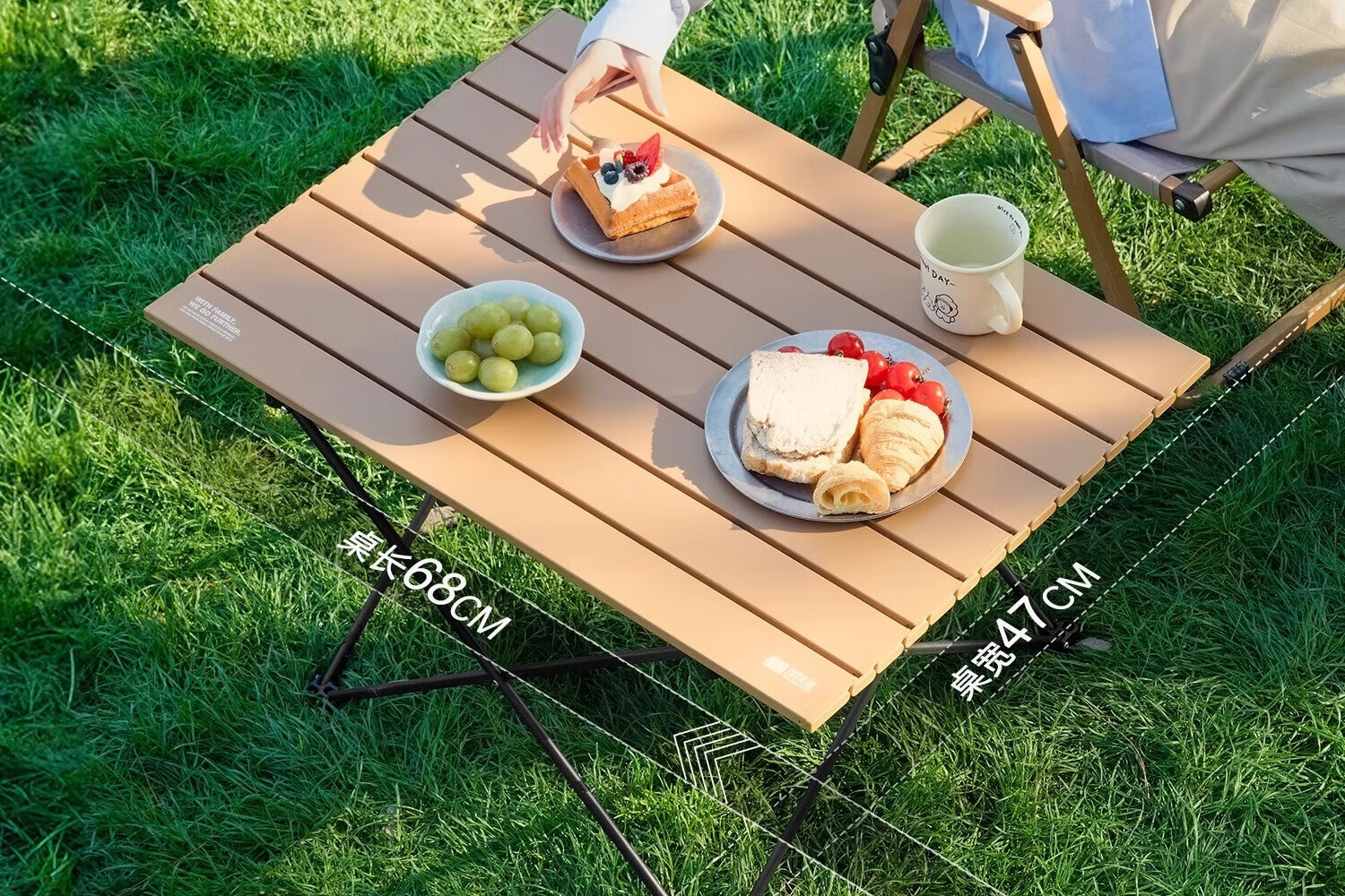 山扉山扉户外折叠桌子套装便携式蛋卷桌露营桌椅野餐装备 54款【碳钢金折叠桌】卡其色