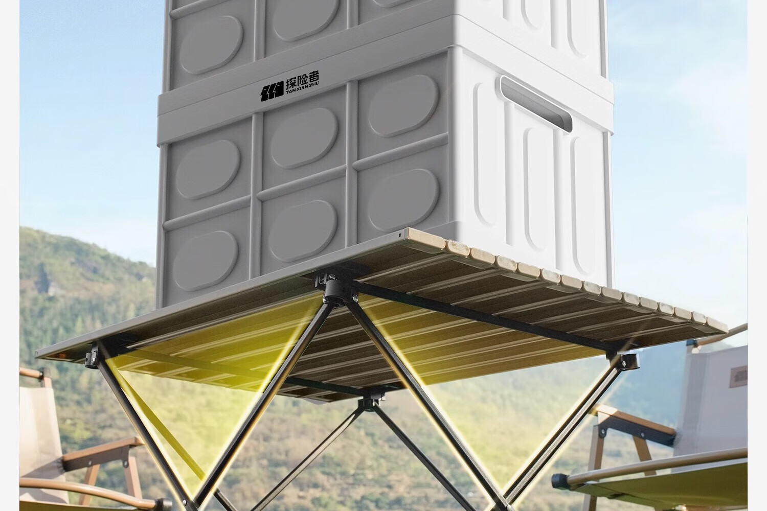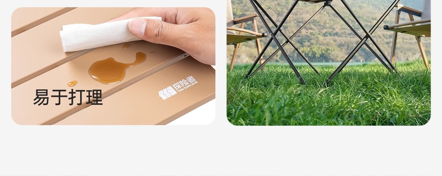 探险者户外桌椅露营桌子椅子蛋卷桌折叠桌便携式野餐桌超轻野营装备套装 【原木色】小号折叠桌+收纳袋