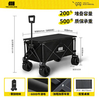 探险者露营车折叠推车户外露营儿童小推车营地车拉年货小拖车聚拢型推车 200L 极光黑9.5CM坦克轮+配套桌板