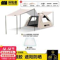 探险者帐篷天幕户外便携式折叠天幕帐篷野营加厚过夜露营装备全套 米黄3-5人帐篷+天幕+防潮垫