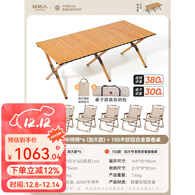 原始人户外折叠桌铝合金蛋卷桌露营桌子野餐桌椅便携式装备野营野炊 特大号铝合金桌+大号铝合金椅*6