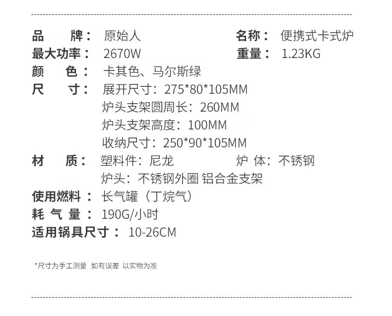 原始人 卡式炉户外便携式卡斯火锅炉野外炉具煤气瓦斯炉煮茶炉 【卡其色】卡式炉