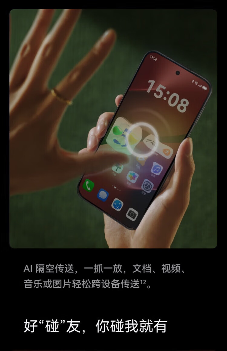 AI大模型,卫星通话,轻薄,LTPO屏幕,高频PWM调光,全焦段影像,潜望式长焦,防水防尘,无线充电,NFC,红外遥控,大底主摄,等深微曲屏