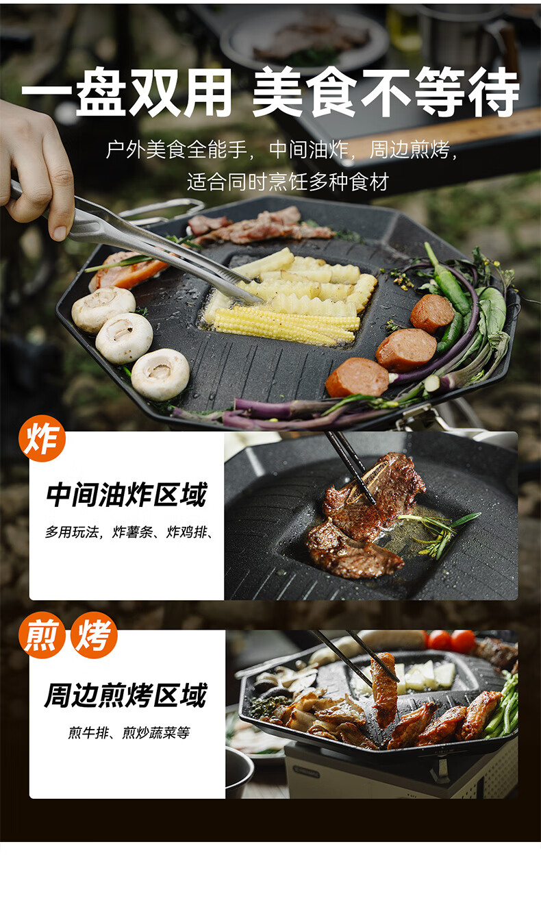 火枫(FIRE-MAPLE)千味煎炸多用烤盘户外卡式炉韩式烤肉露营不粘折叠铁板烧烤锅 煎炸多功能不粘烤盘