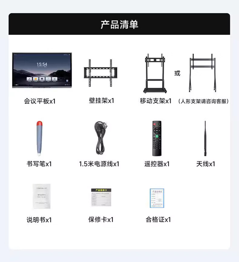 会议一体机视频会议平板多媒体教学一体机触摸屏电脑智能互动电子白板 会议触控大屏100寸 86寸会议一体机 安卓系统+推车