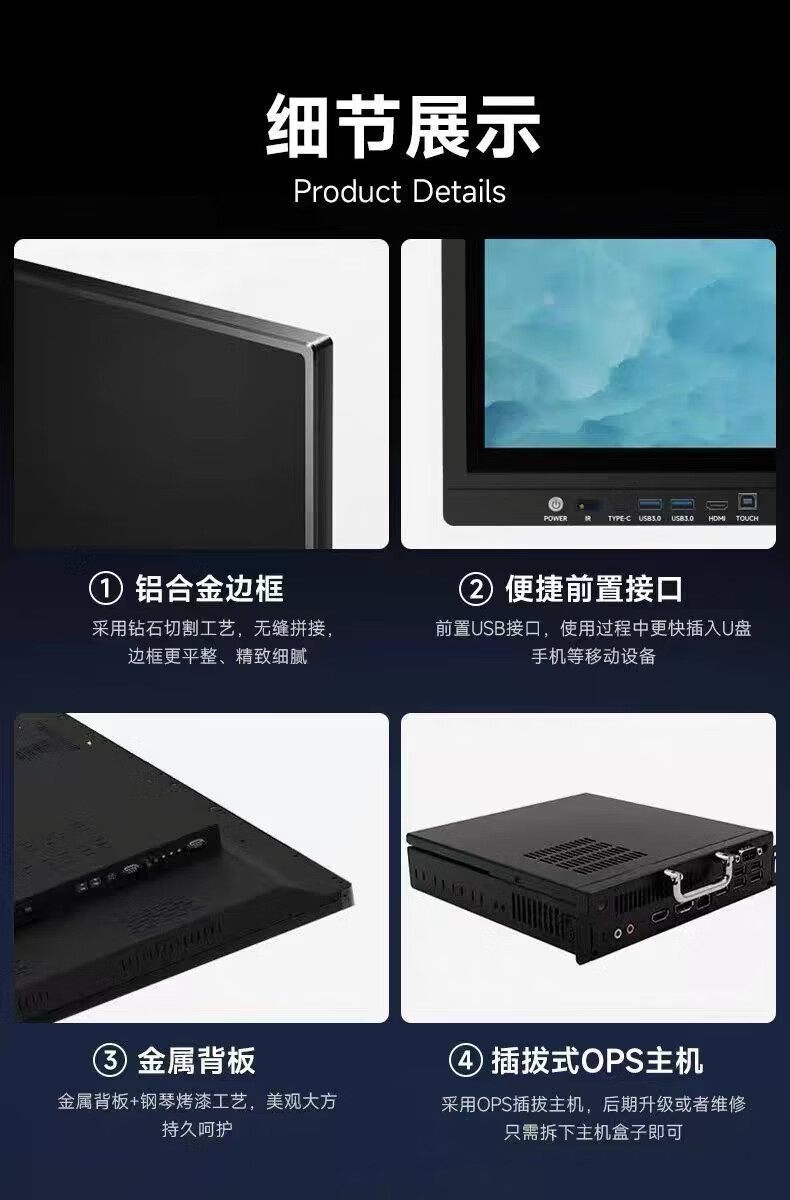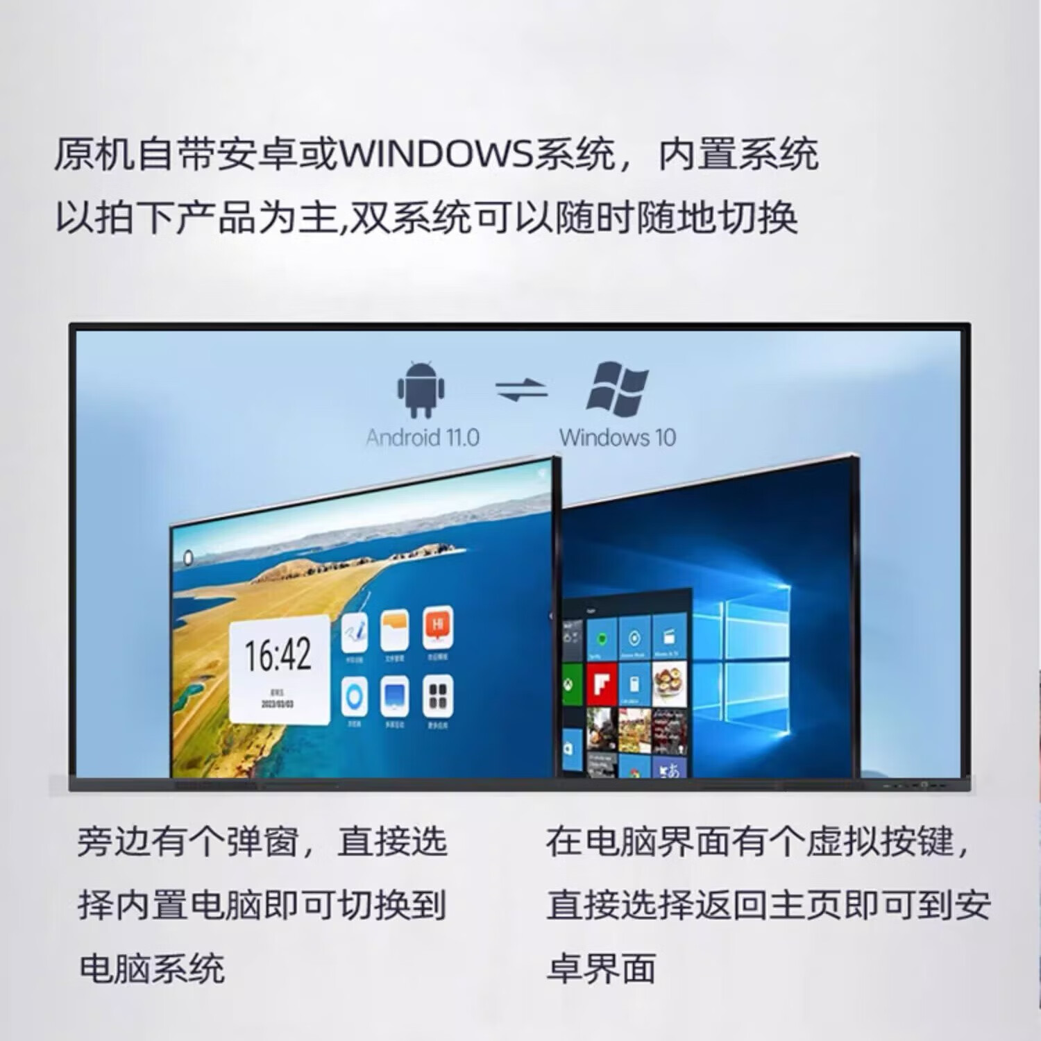 4K高清75寸教学会议一体机多媒体培训办公电子白屏触摸屏电视 86英寸双系统【i7+512G+摄像头】