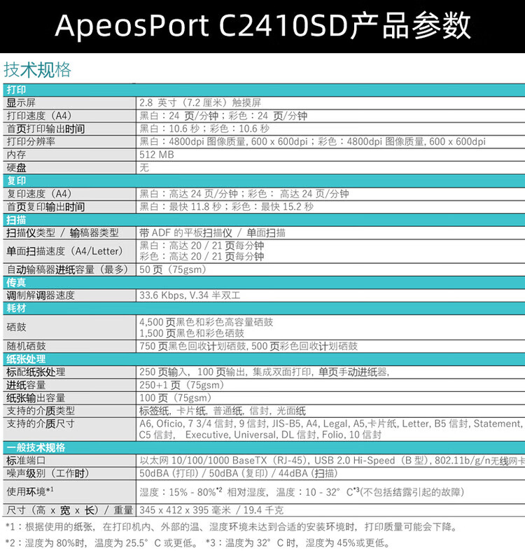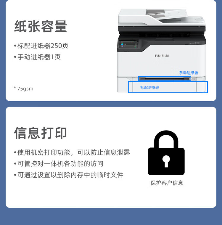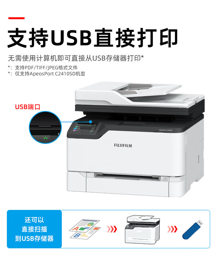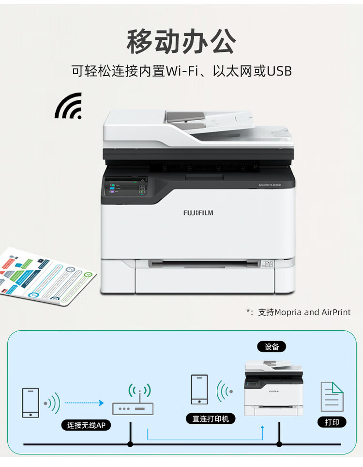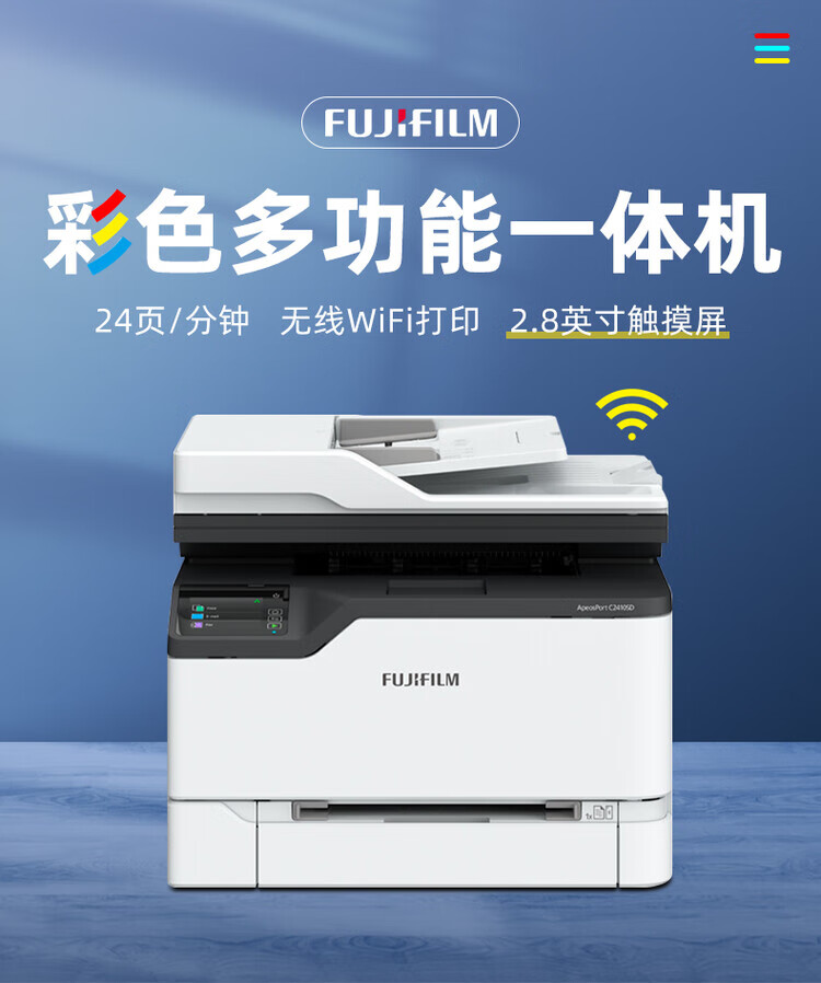 富士胶片(FUJI FILM)APC2410SD彩色激光打印机无线WIFI商用办公打印复印扫描传真一体机每分钟可打24页 APC2410SD打印复印扫描传真一体机 官方标配