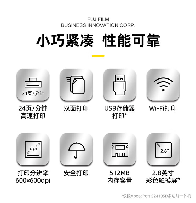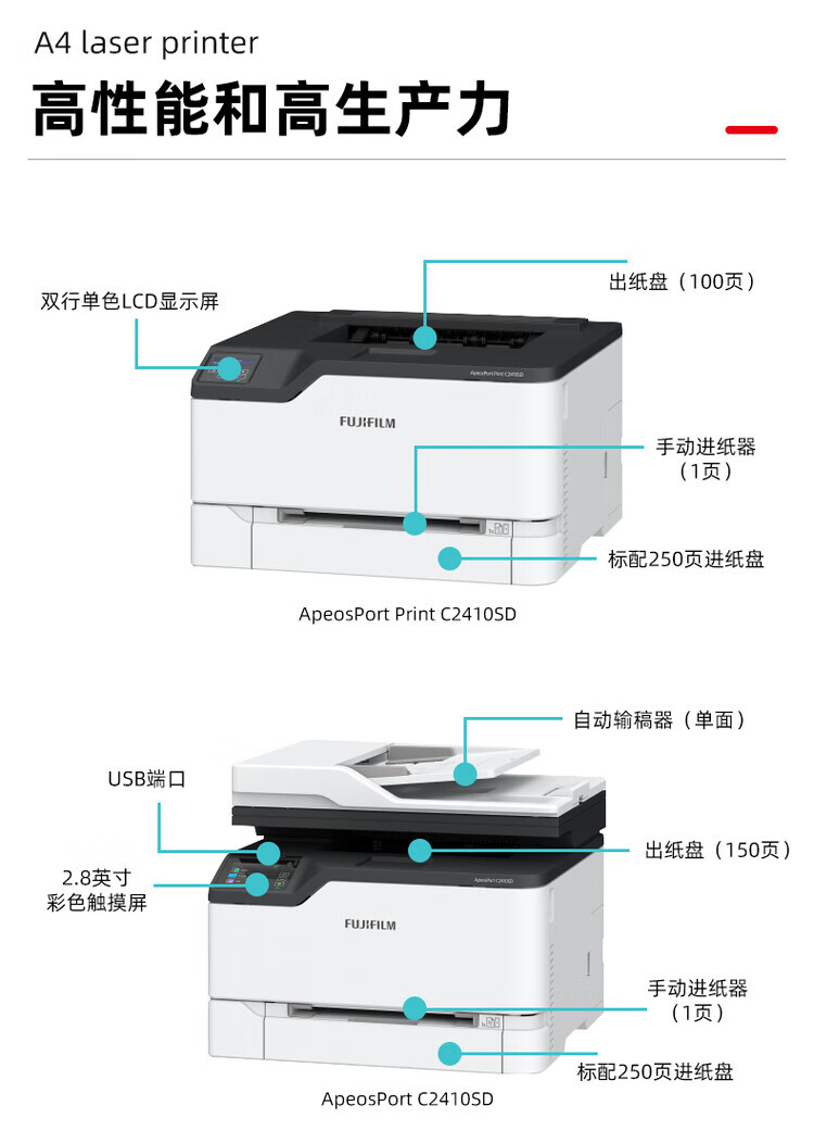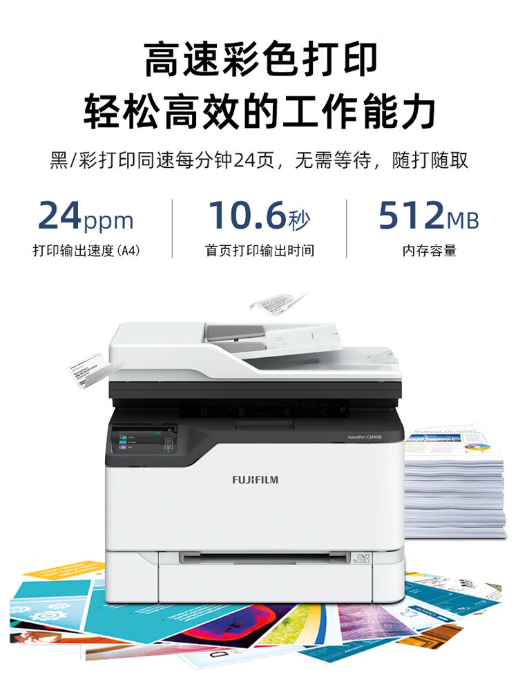 富士胶片(FUJI FILM)APC2410SD彩色双面打印机C2410无线打印机A4彩色激光复印打印扫描多功能一体机 APC2410SD无线彩色一体机(24页/分钟) 标配打印复印扫描传真