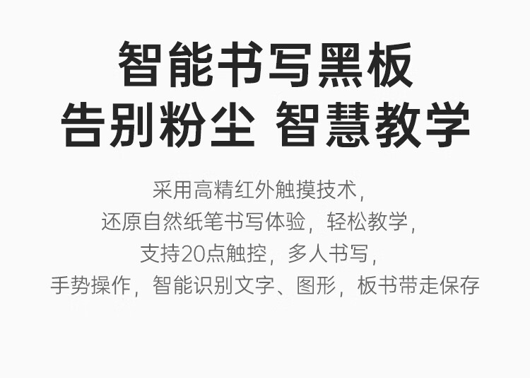 1、收到货快20天了,京东到货确实快,预约安装第二天就来了,师傅也很负责。使用了十多天,功能很实用很方便,显示非常清晰,特别是黑板功能特别强大,反应很快,指哪打哪没有延迟,智能护眼功能非常适合孩子近距离观看,眼睛不累不酸,光线柔和。讲题擦写非常便捷,手背一摸就擦掉,设计很人性化 2、多次采购,使用率很高。价格公道,性能优异! 3、发货速度快,质量不错,大品牌,售后有保障,上门安装师傅服务也不错,态度好,比较满意的一次购物 4、太方便了 发货快 安装师傅给力 操作方便快捷 培训开会效果佳 有点遗憾没有买最大屏 已经推荐同事买