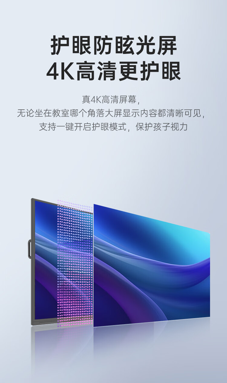 小米4k新款会议智慧屏教学触摸一体机多媒体 100寸双触控防爆电子白板 65寸i7/8+256G双防蓝光屏幕