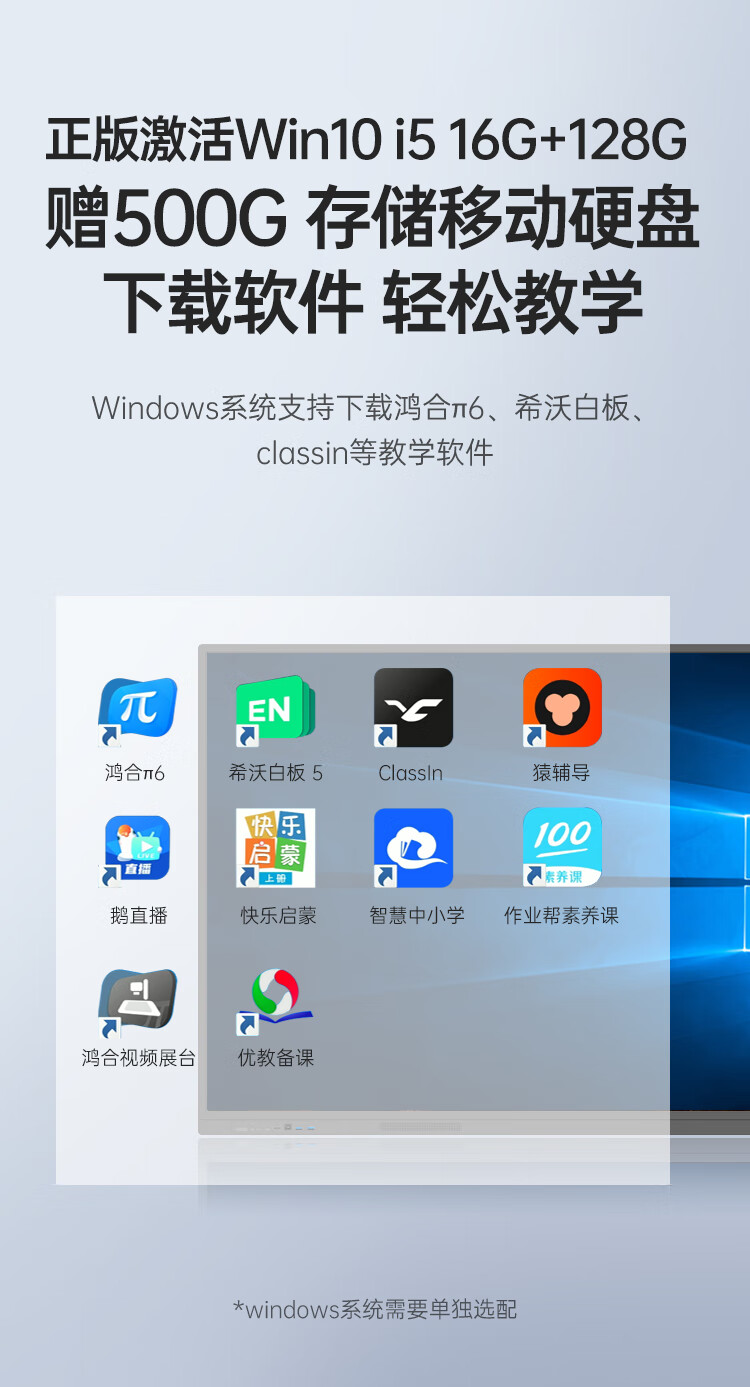 华创 教学一体机触摸屏电视智能会议平板壁挂广告机多媒体4K电脑电子白板幼儿园触屏显示器 65英寸幼教一体机+壁挂支架 i5处理器+8g内存+256g固态硬盘