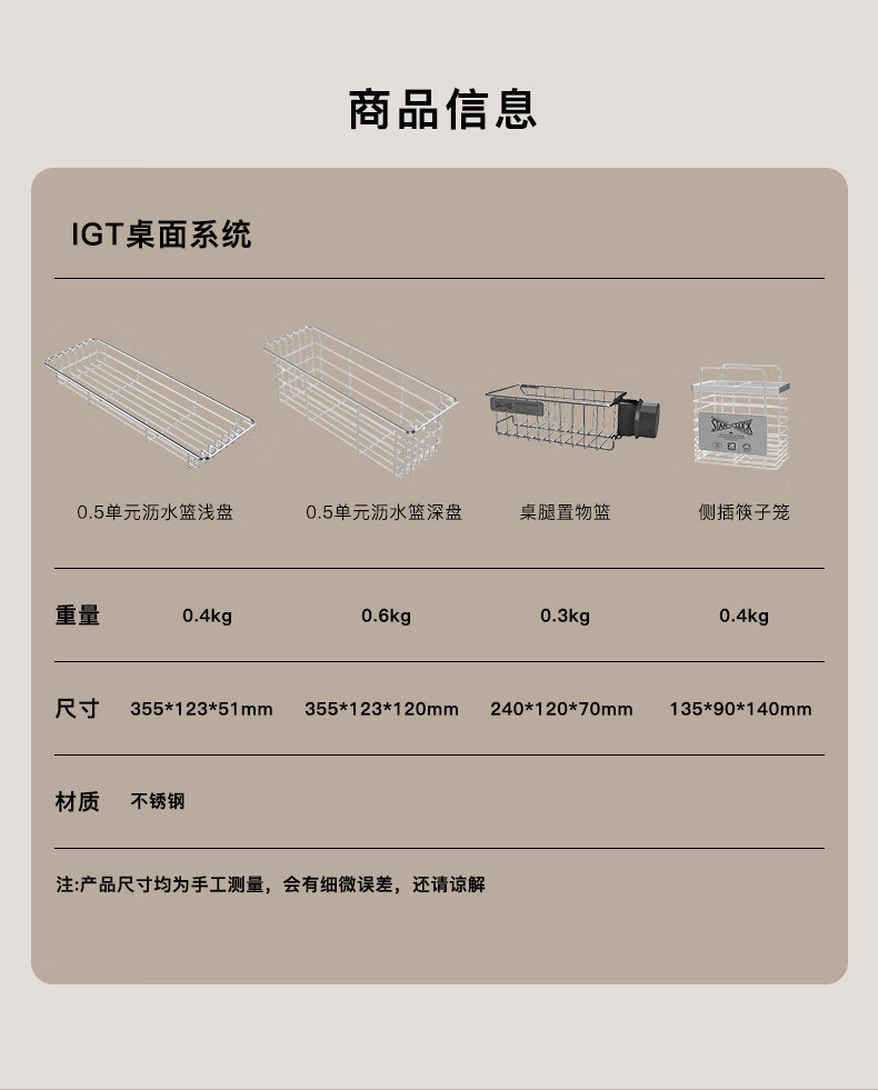 stanluck喜登乐0.5单位沥水篮桌腿置物篮侧插筷子笼IGT配件移动厨房深盘 侧插筷子笼