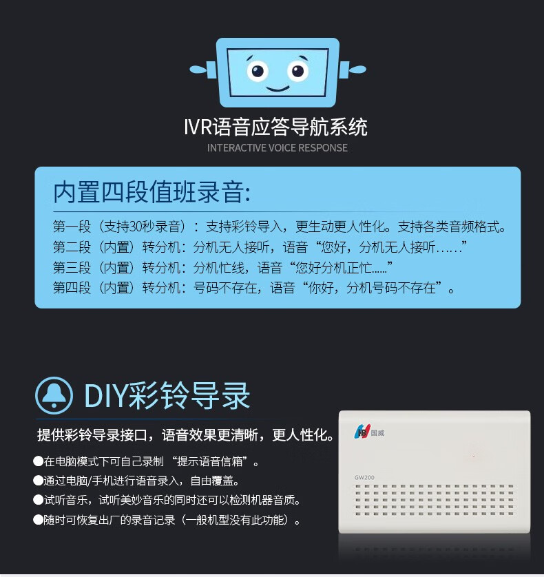 国威 程控电话交换机小型桌面式2进8出4进16出 集团企业内线分机小门数交换机 语音导航即插即用 GW200-2外线8分机