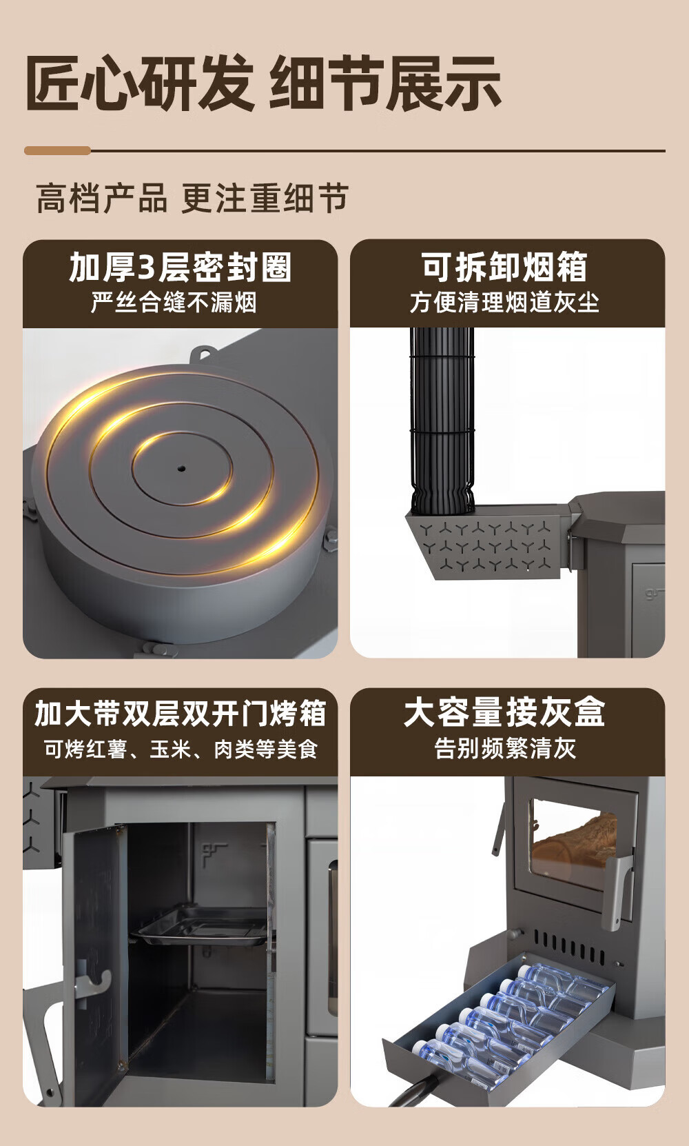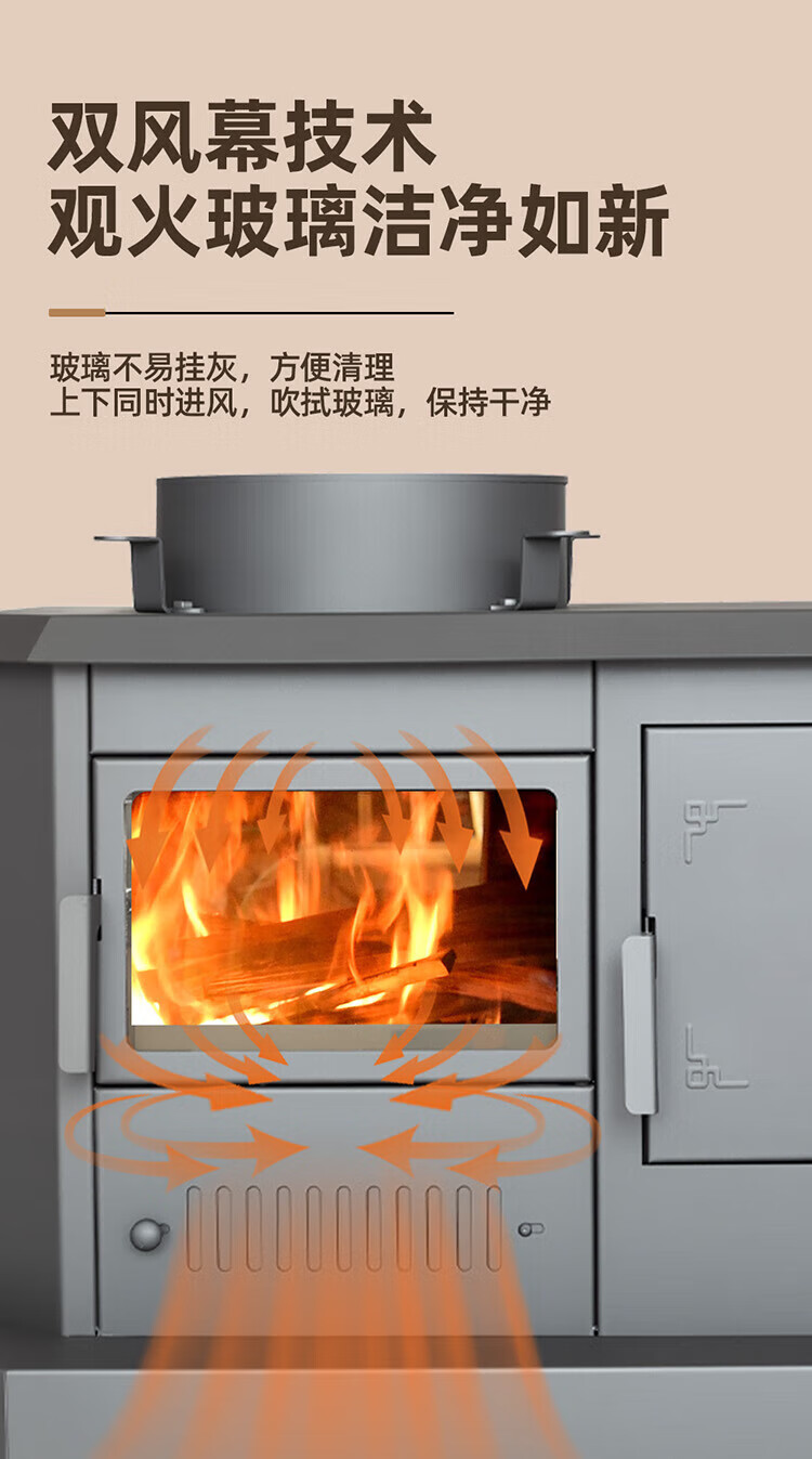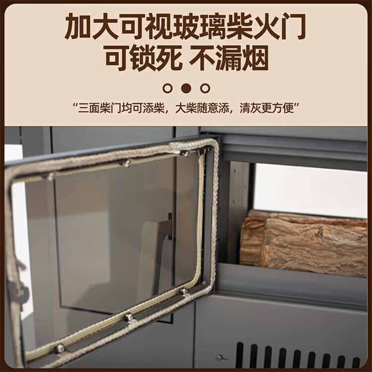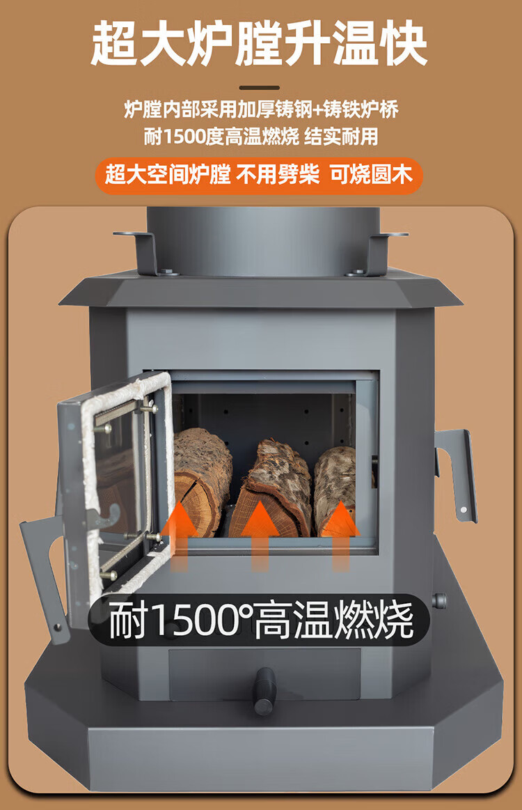农村柴火炉 家用冬季木煤气取暖炉烧木柴气化炉多功能柴火灶烤火炉 烧柴-配不锈钢烟囱