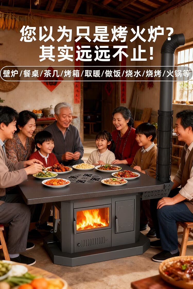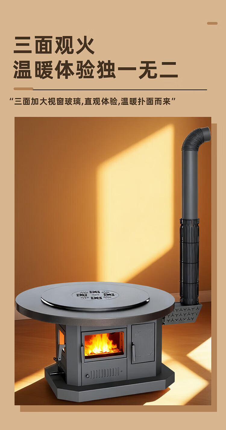 炊火匠【送货上门】冬季取暖烤火炉室内家用无烟新型三面观火柴火炉壁炉 可改贴地烟道·隔热防烫·四面围桌【咨询客服下单】
