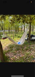 颜色选了好几个,都很耐脏。吊床网眼透气不闷热,折叠后只有水杯大小,后备箱轻松收纳,露营神器! 体积重量:体积小方便携带 承重效果:称重量很棒