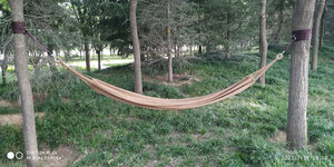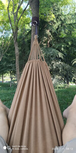 还行吧,就是布料看着有点薄。吊床两头各有两个绳头,使用前最好系紧,要不看着用久了会开。夏天躺这个风太小的话会感觉有点闷,虽然它透气。本来想买个帆布的,它也标注了加厚帆布,但买到后看详情里描述面料是65%聚酯纤维+35%棉,不知道这个棉制品是帆布的吗!?