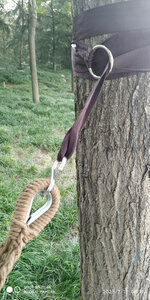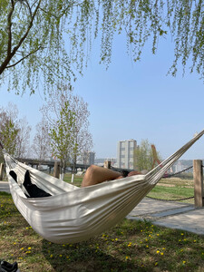 很结实,确实不错,很满意的一款吊床,春天绿油油的环境,再配上这款白色的吊床,这款吊床的捆绑方式很好,不用系扣,很简洁。