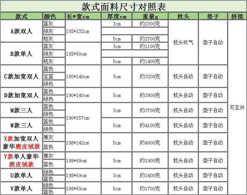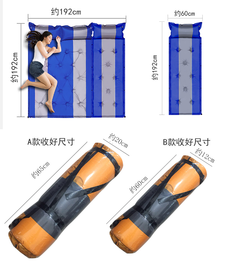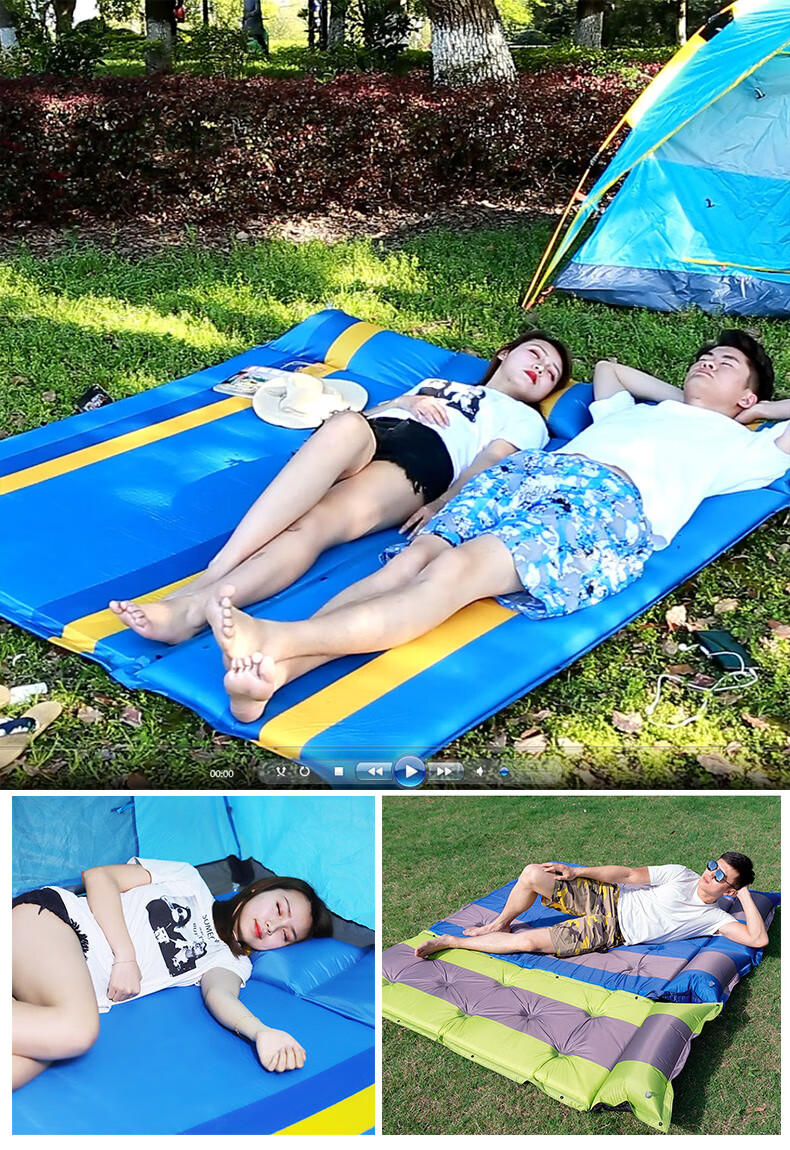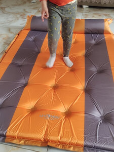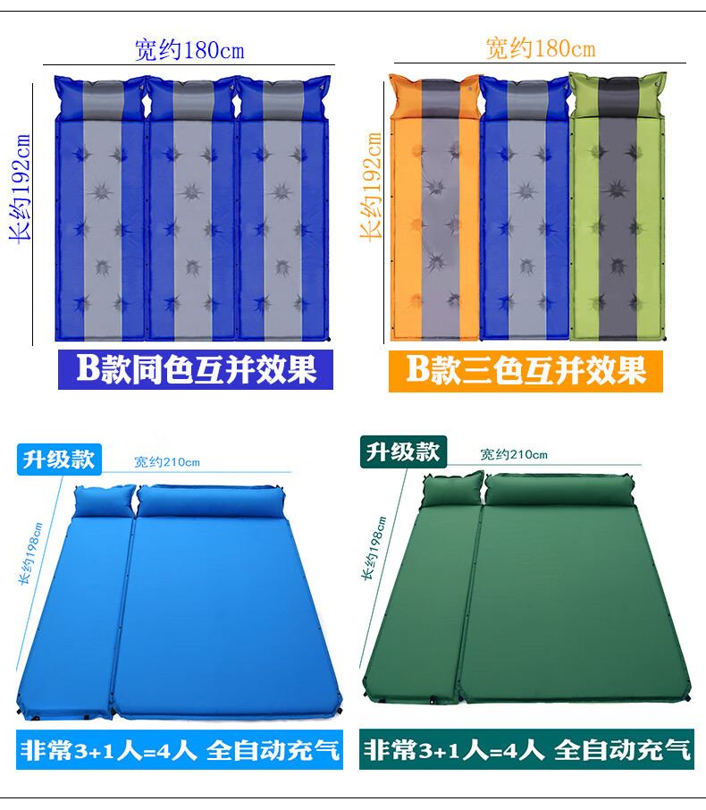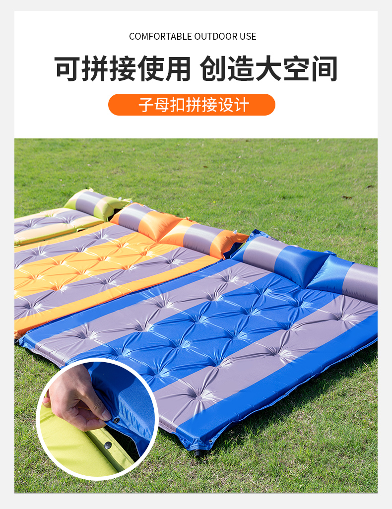 防水效果:还可以,但是气垫感没有那么明显,睡在上面稍微有点薄的感觉 适用场景:在家,在外面,草地上,甚至可以当个餐垫 容纳人数:2个人比较宽裕,买了两个能够拼成一个更大的 透气效果:不太透气