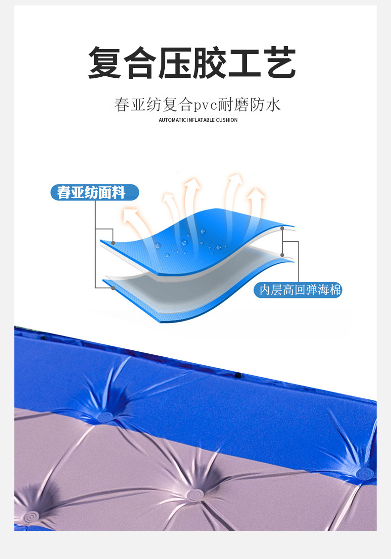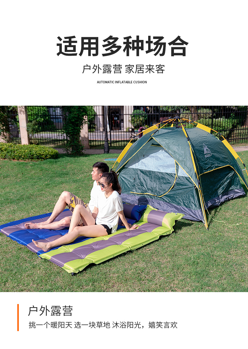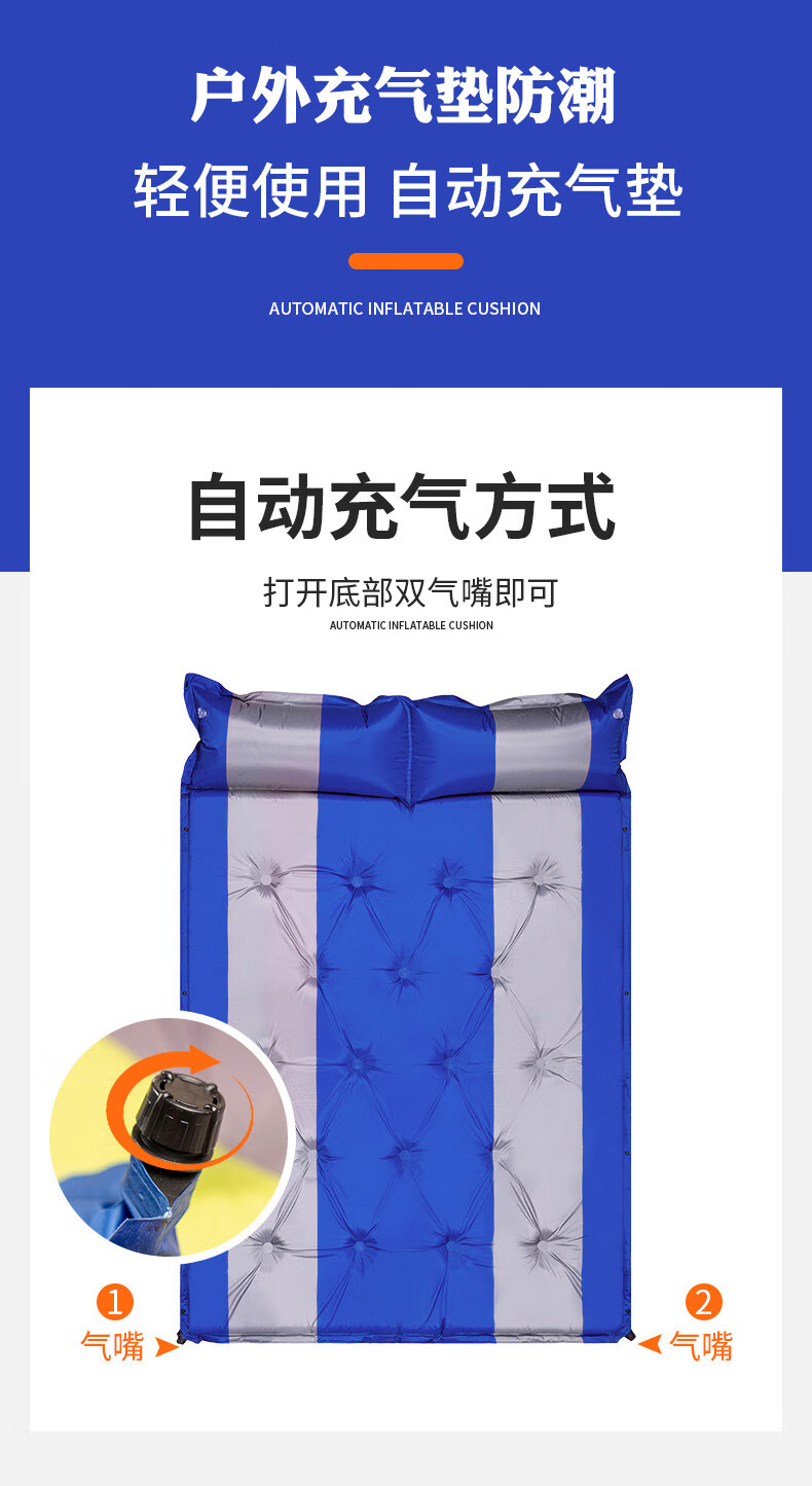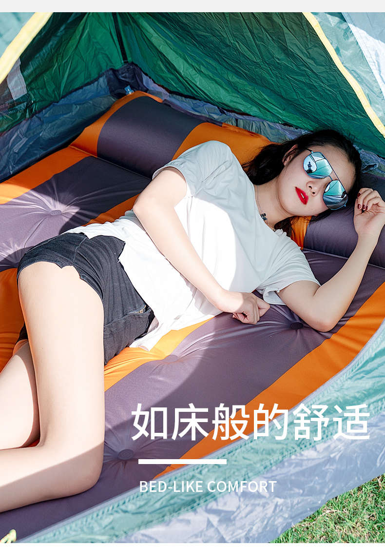 一款自动充气的帐篷地垫,超级舒适,防雨、防潮的一款产品!产品配色很好看,无极的设计,展开和收缩很方便的一款产品,值得推荐给大家的一款露营产品!