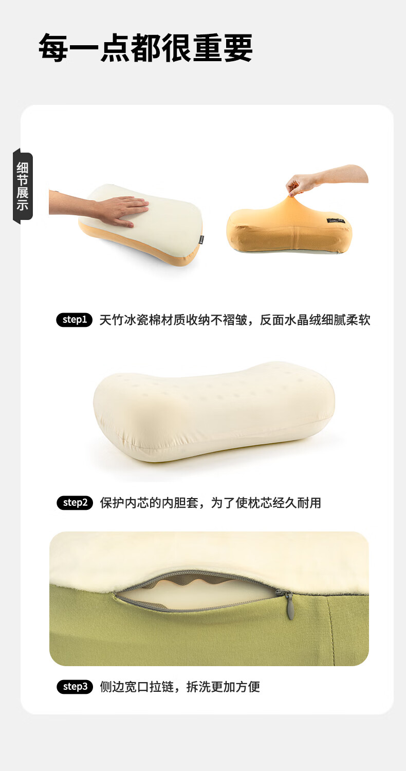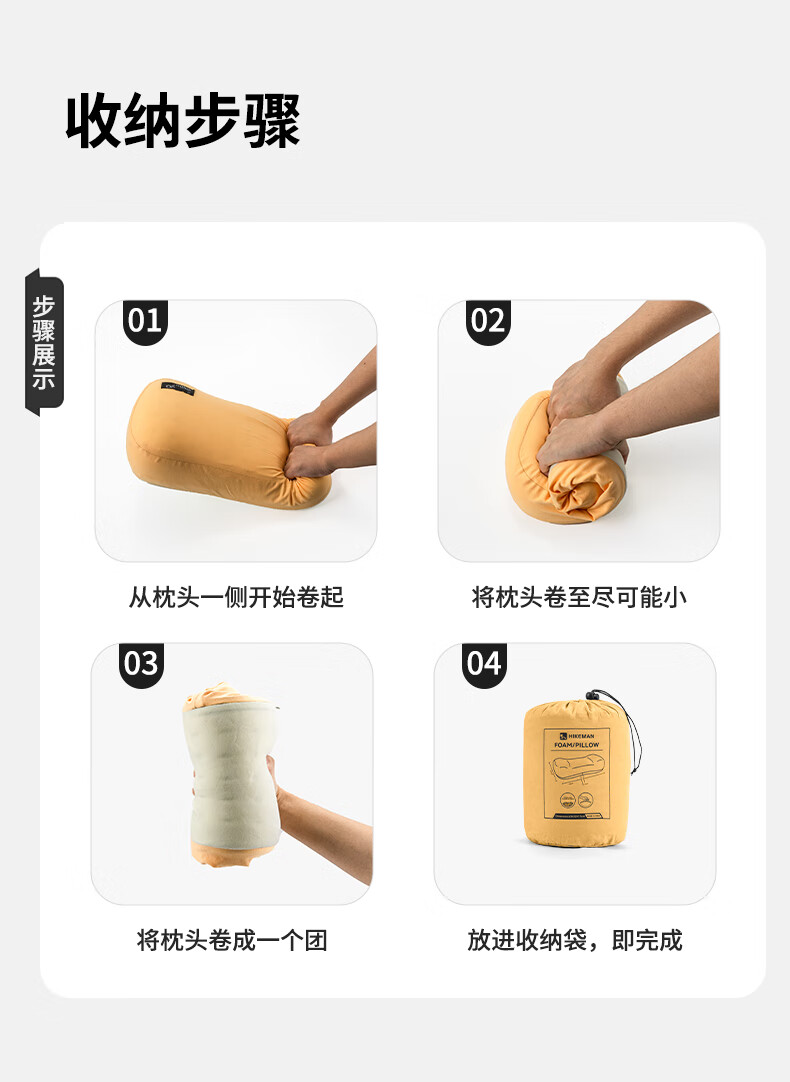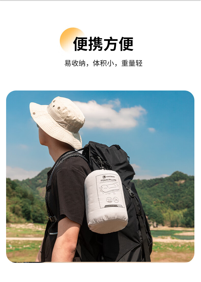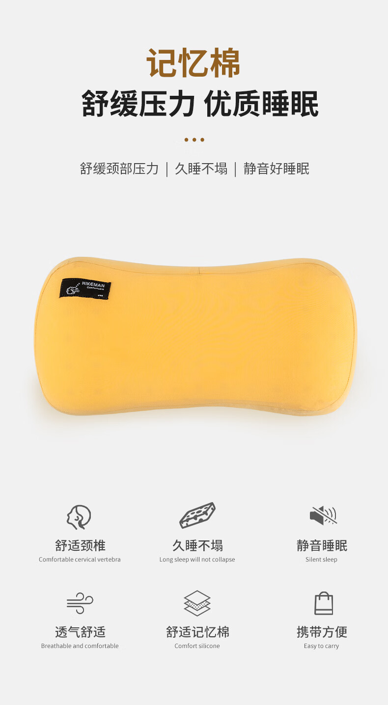 HIKEMAN憨客户外记忆棉枕头护颈睡眠枕慢回弹记忆枕家用露营枕头午睡靠枕 云朵枕-灰色 送收纳袋