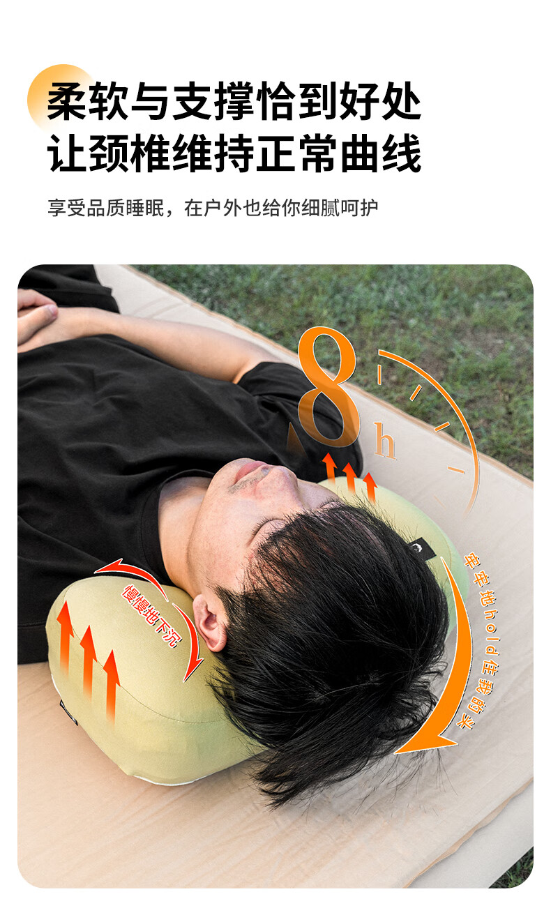 HIKEMAN憨客户外记忆棉枕露营便携护颈枕头旅行自充气高回弹静音睡眠神器 【抹茶绿】深睡护颈记忆棉