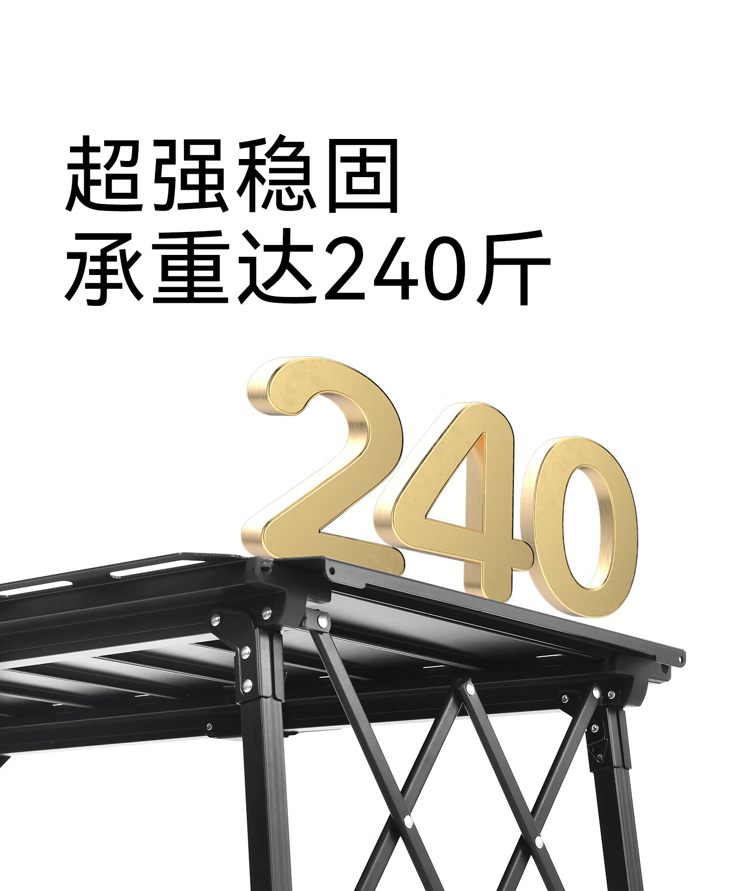 Guide Series户外铝合金折叠桌露营桌便携升降沙滩烧烤桌加宽桌自驾游车载桌 新 加宽金属 木纹黑色