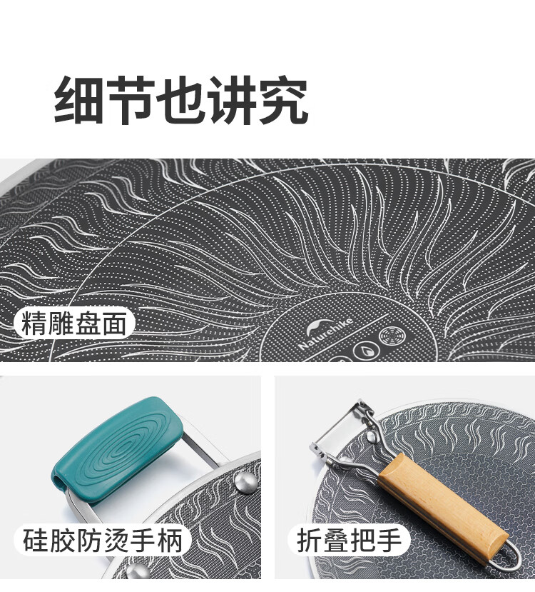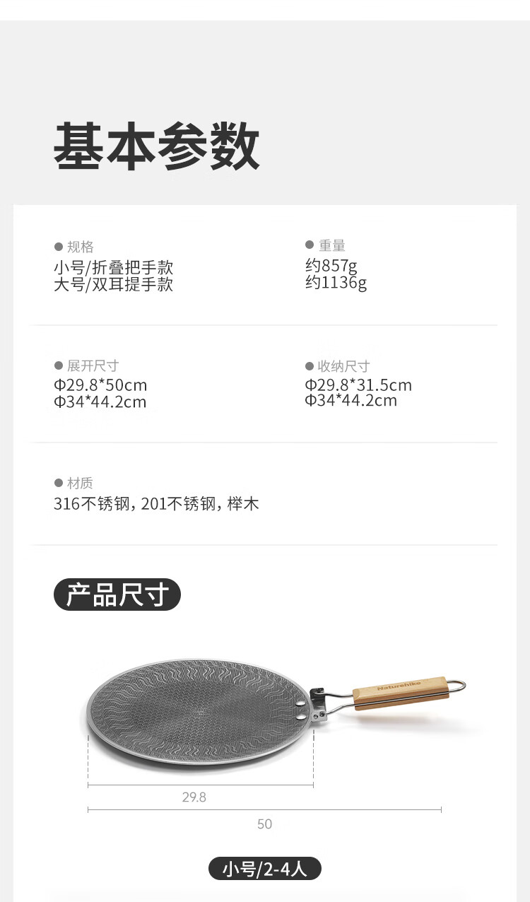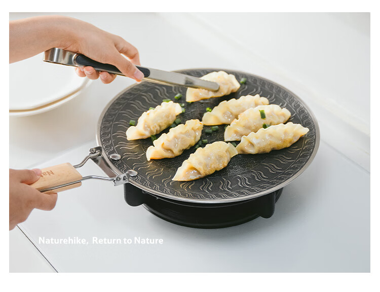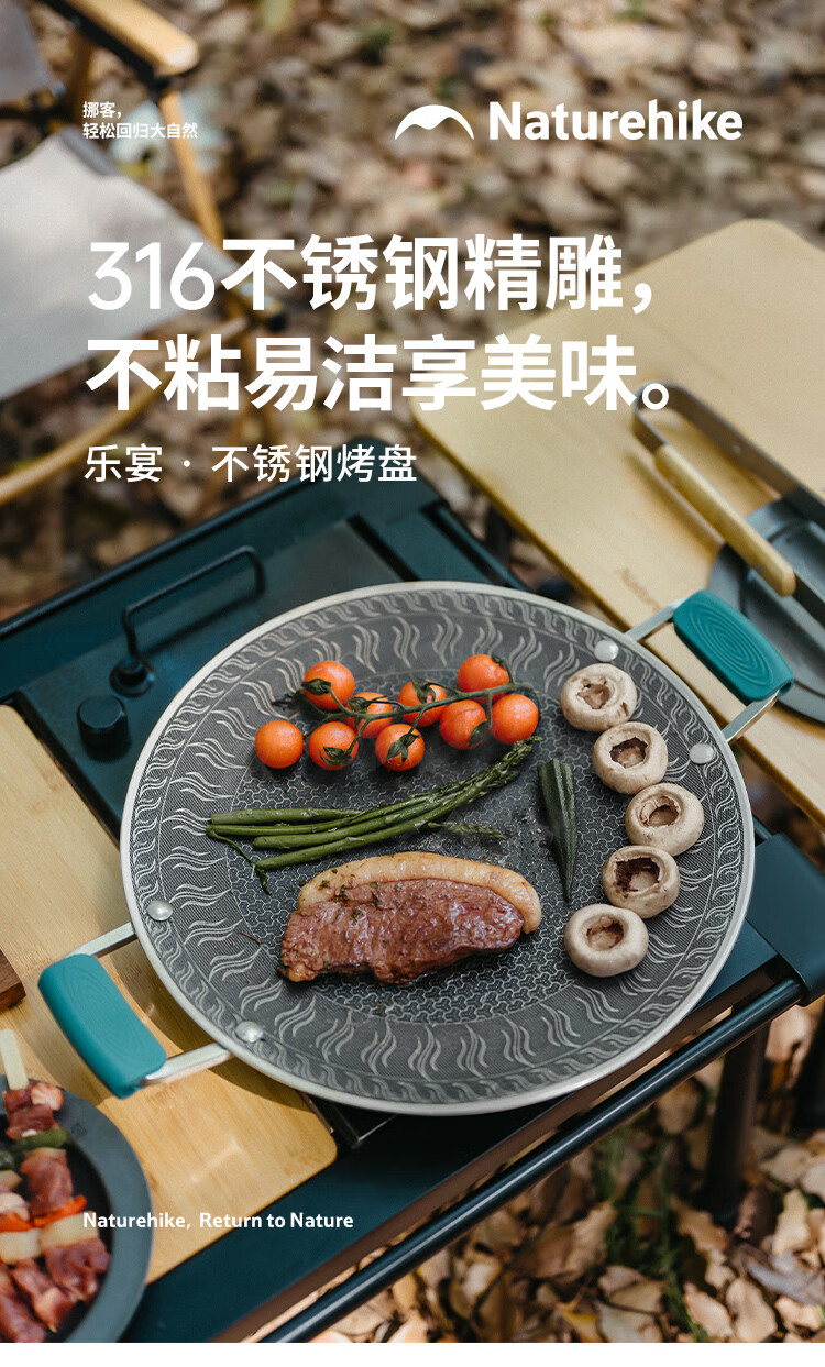 NatureHike挪客烤盘户外露营卡式炉韩式烤肉盘野餐烧烤盘316不锈钢煎烤盘 小号/折叠把手款