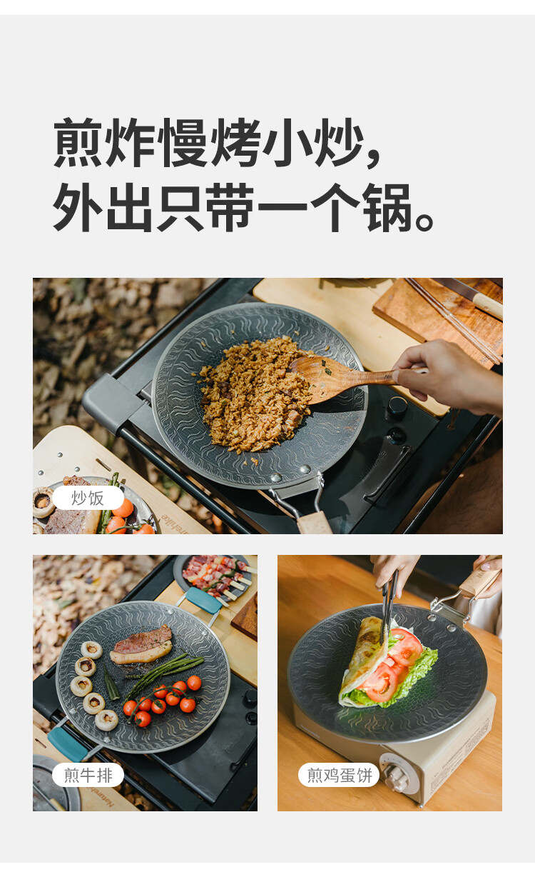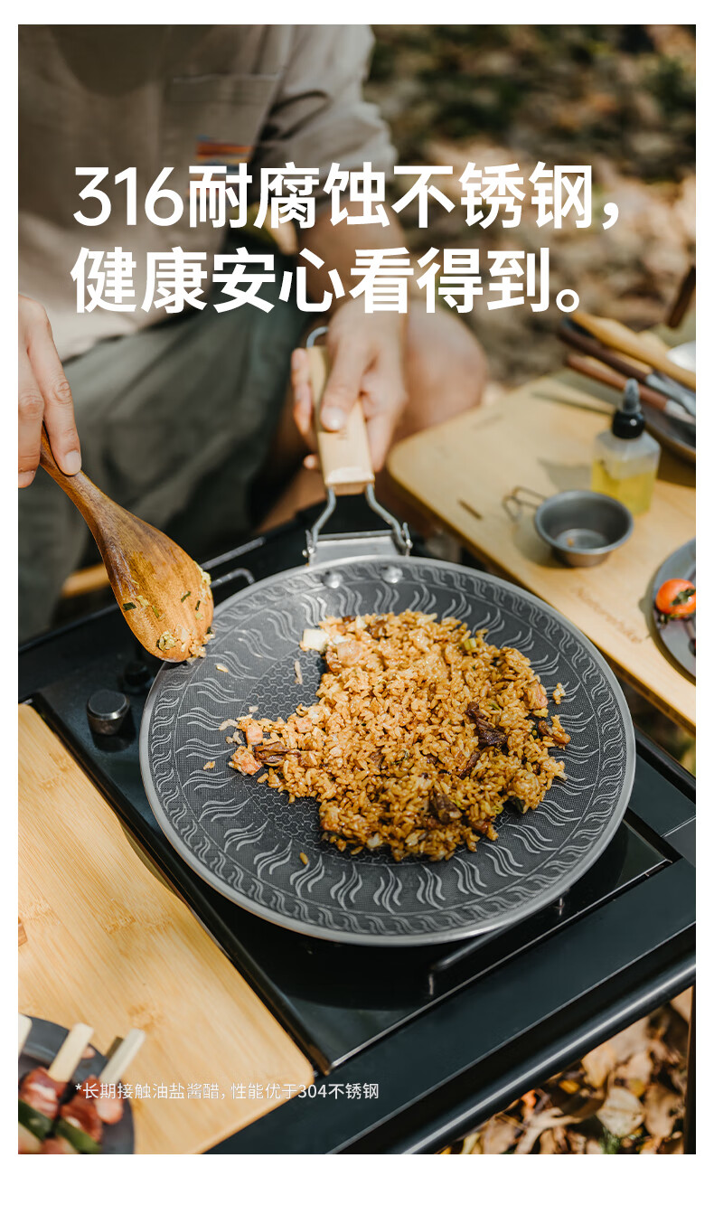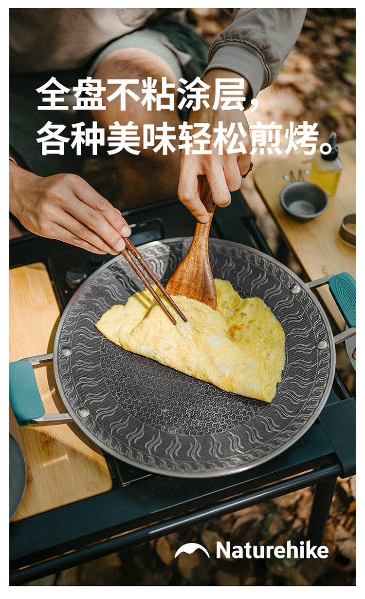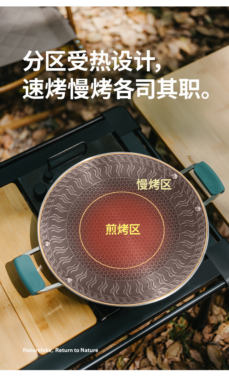 NatureHike挪客烤盘户外露营卡式炉韩式烤肉盘野餐烧烤盘316不锈钢煎烤盘 小号/折叠把手款