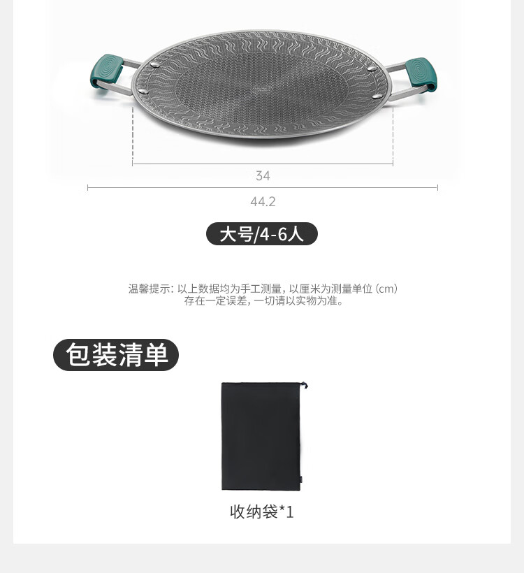 CLS户外露营野餐烧烤盘野炊可折叠便携式锅煎锅铸铁锅烤盘防烫手柄 20cm-小号